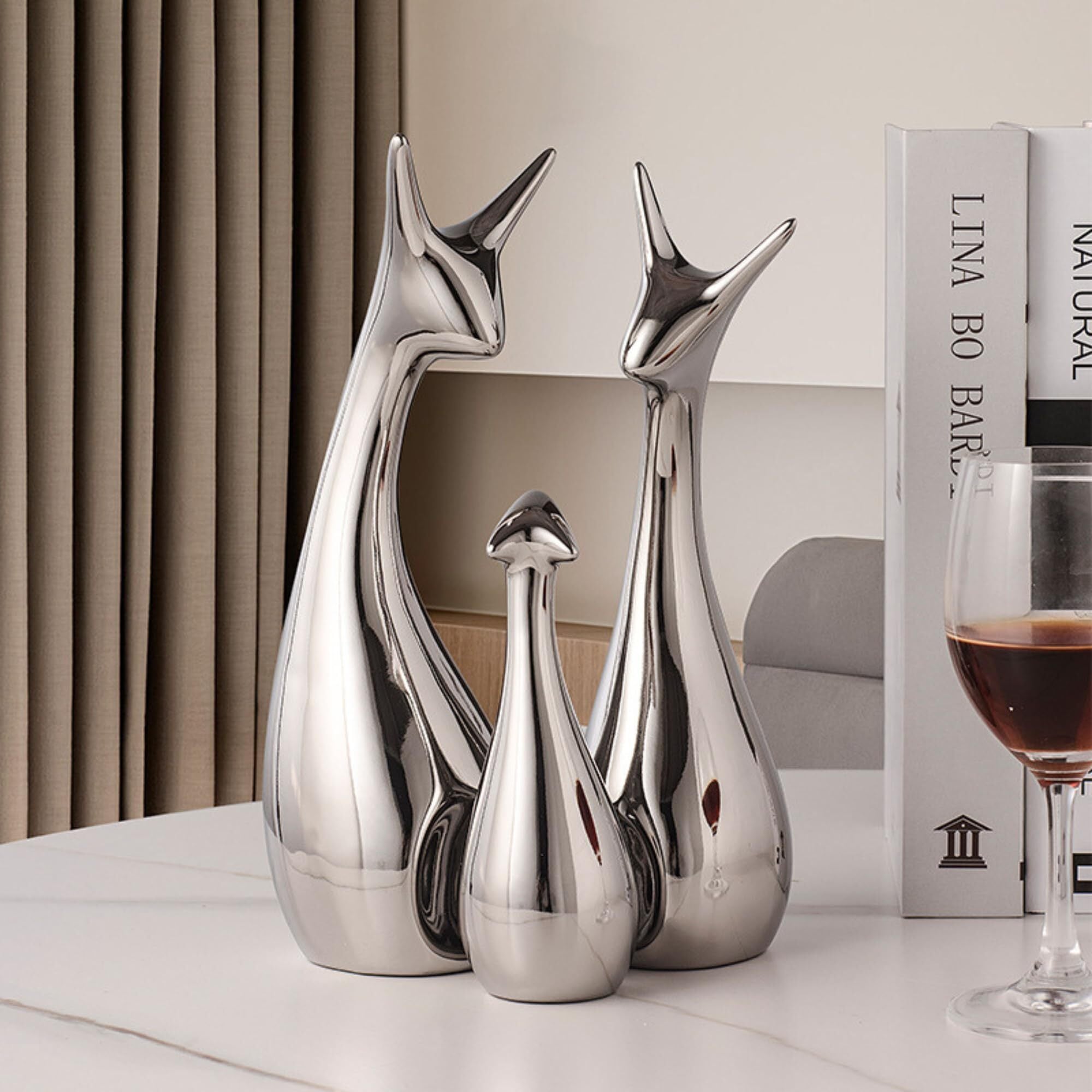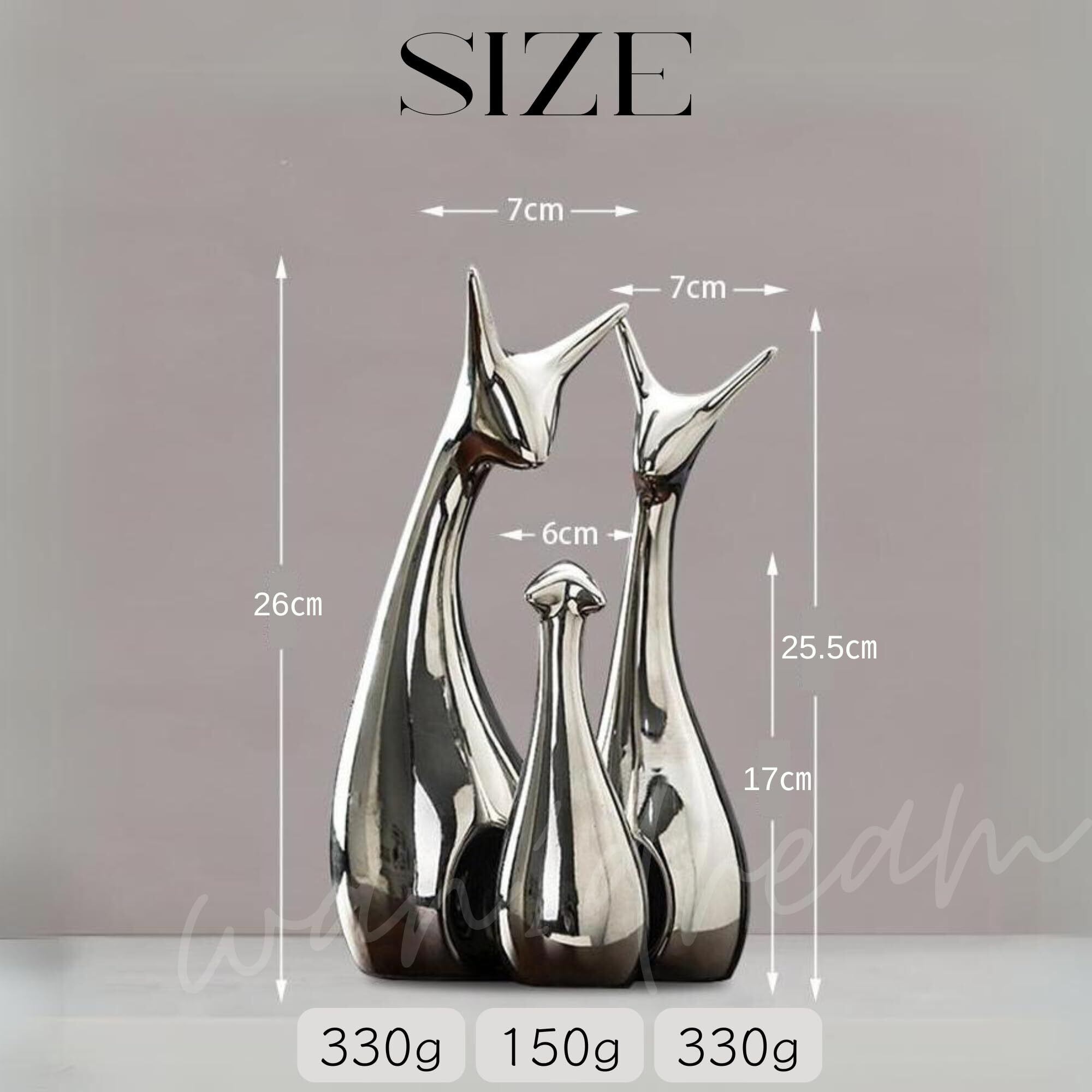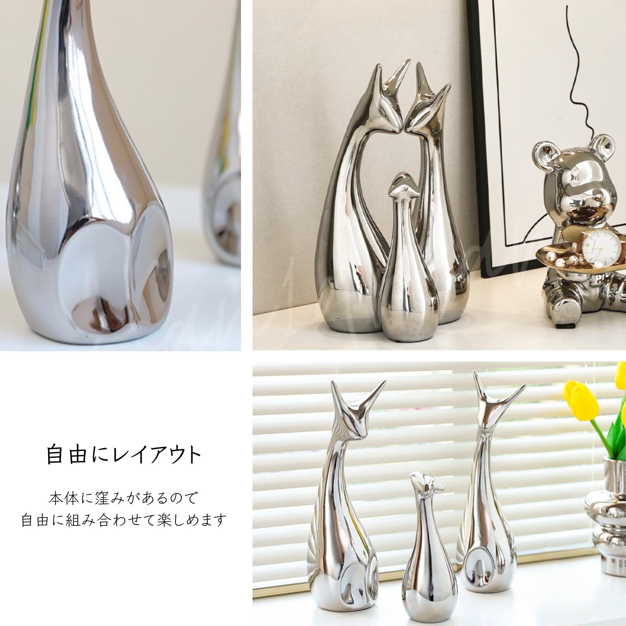 アニマルファミリー 北欧系インテリア 陶器製オブジェ (3, シルバー)