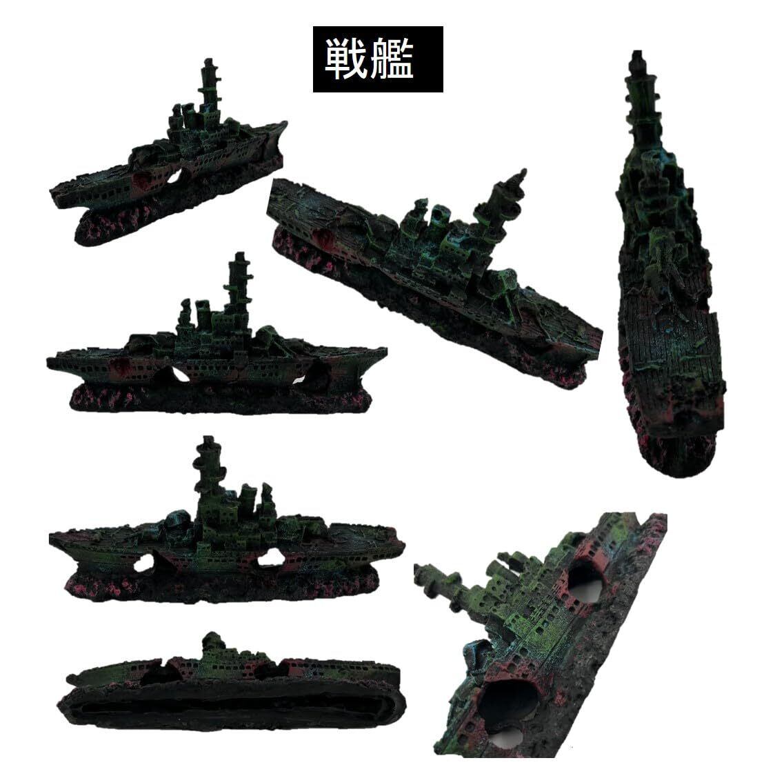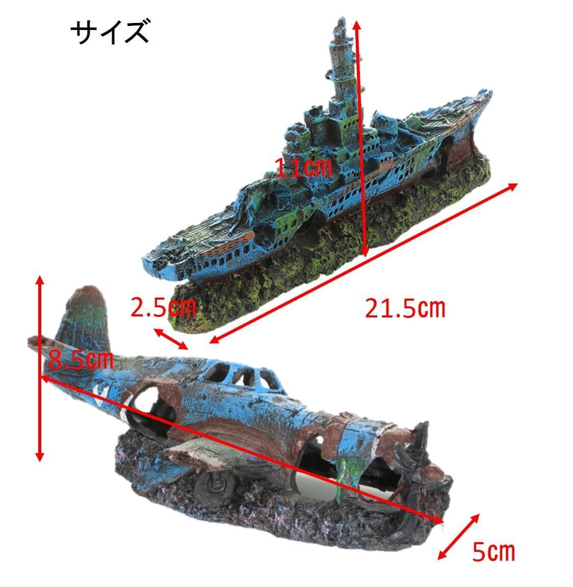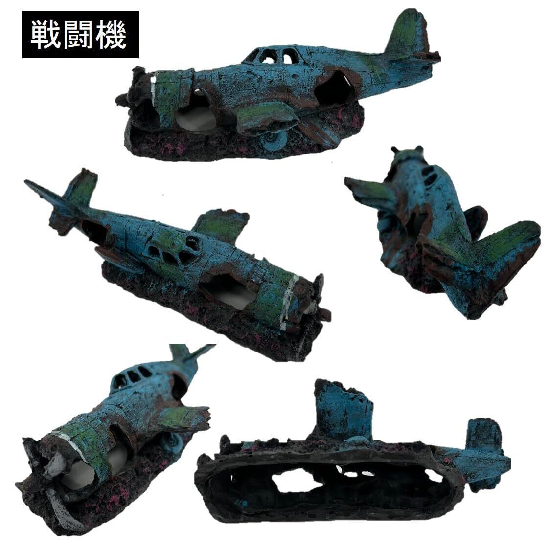ST TS アクアリウム 水槽 オブジェ 戦闘機 潜水艦 戦艦 隠れ家 アクアリウムオーナメント インテリア 置物 飾り (戦闘機&戦艦)