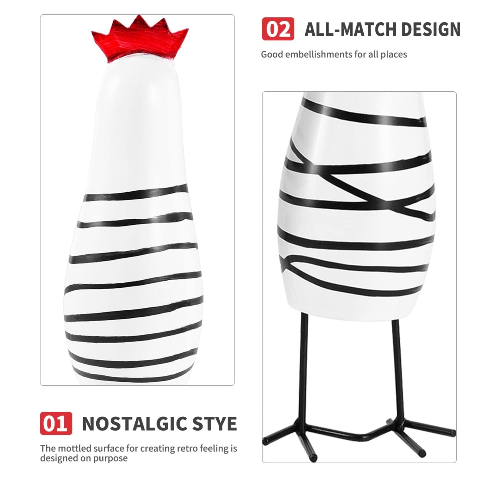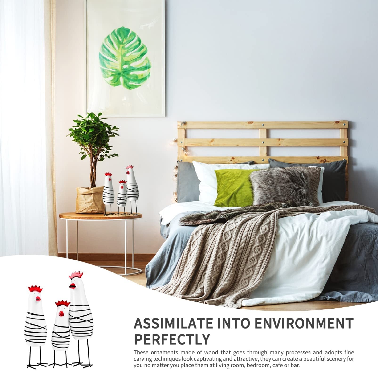 NOLITOY にわとり 置物 北欧雑貨 かわいい 鶏 オブジェ インテリア 動物の置物 飾り物 木製 大中小 3個セット