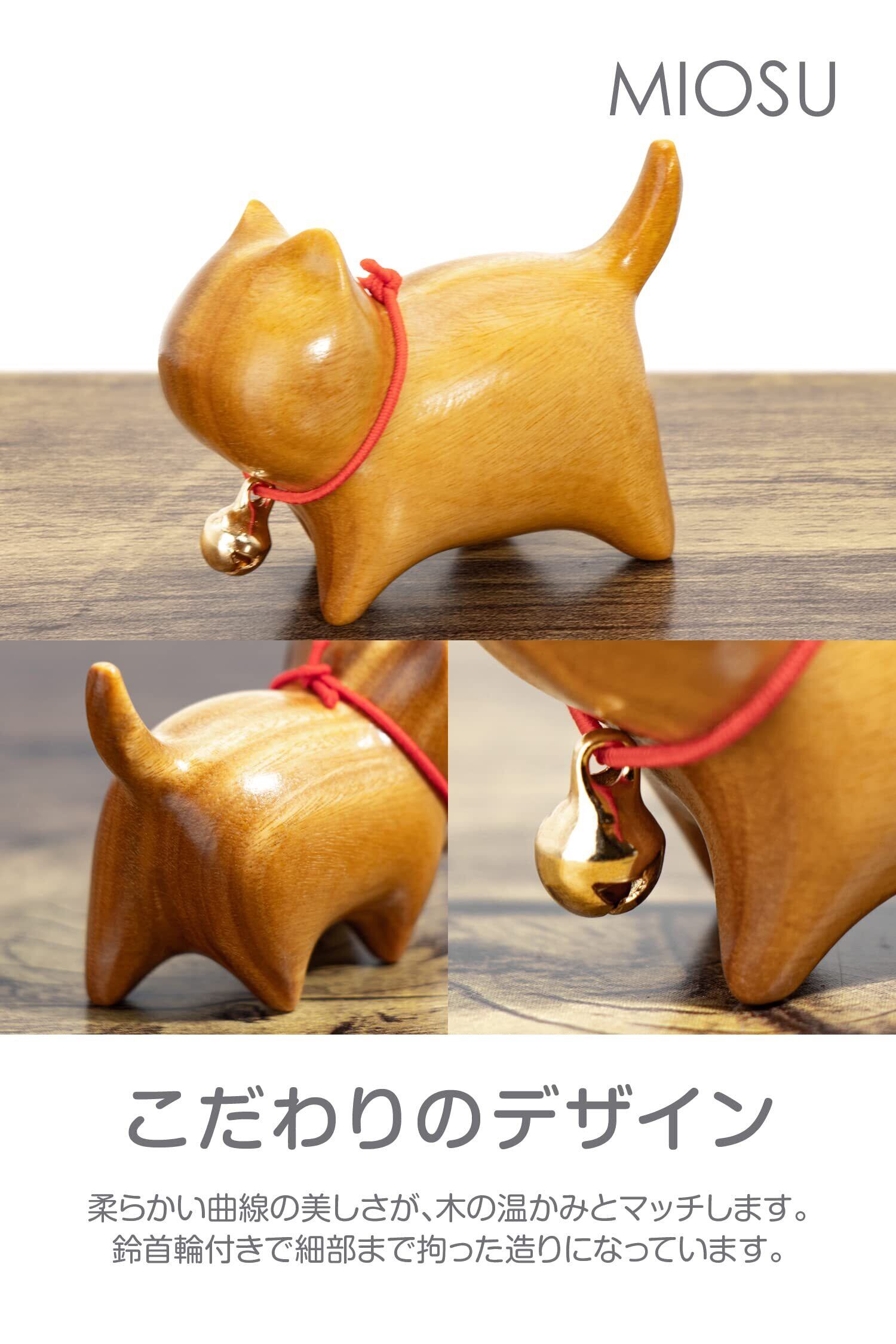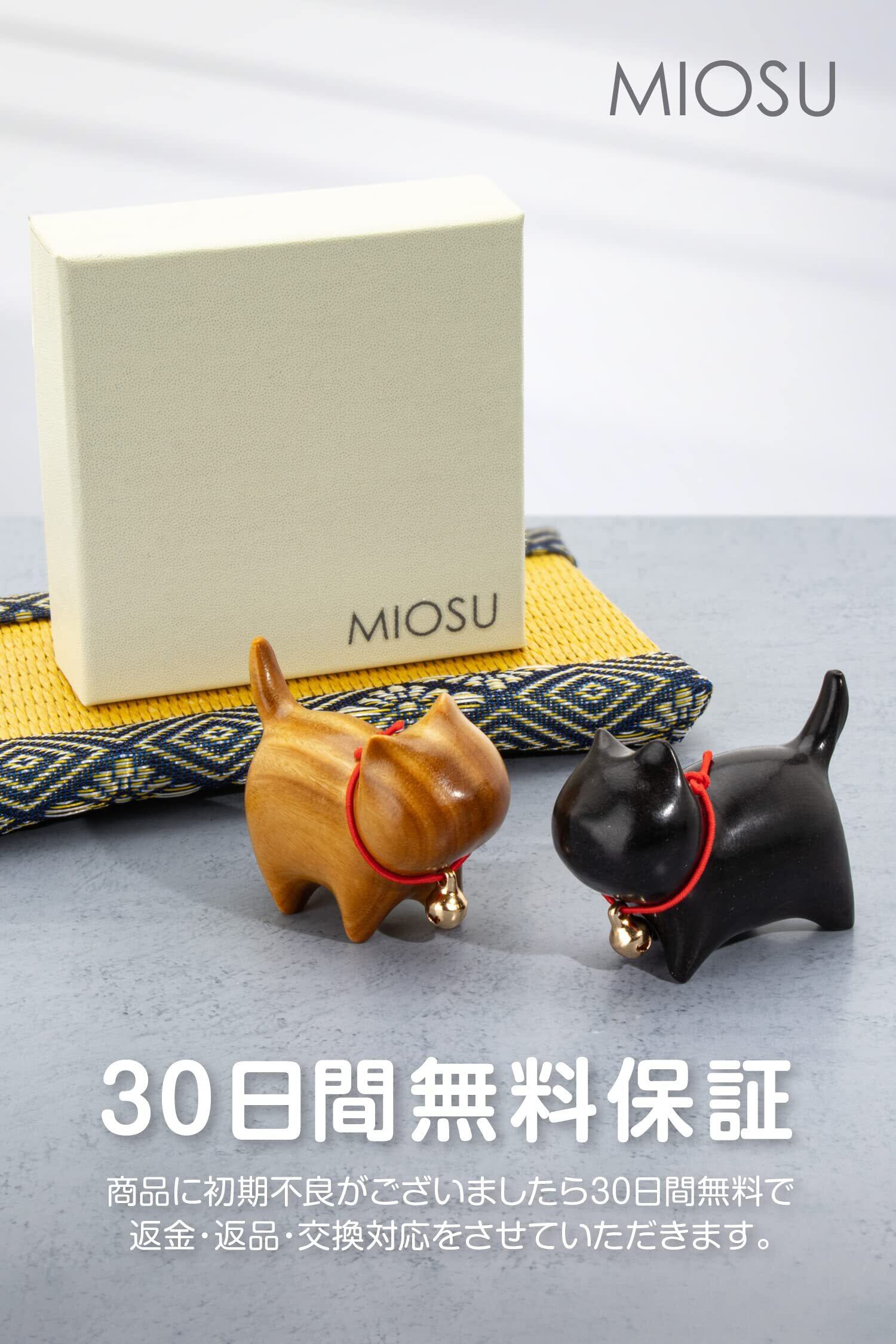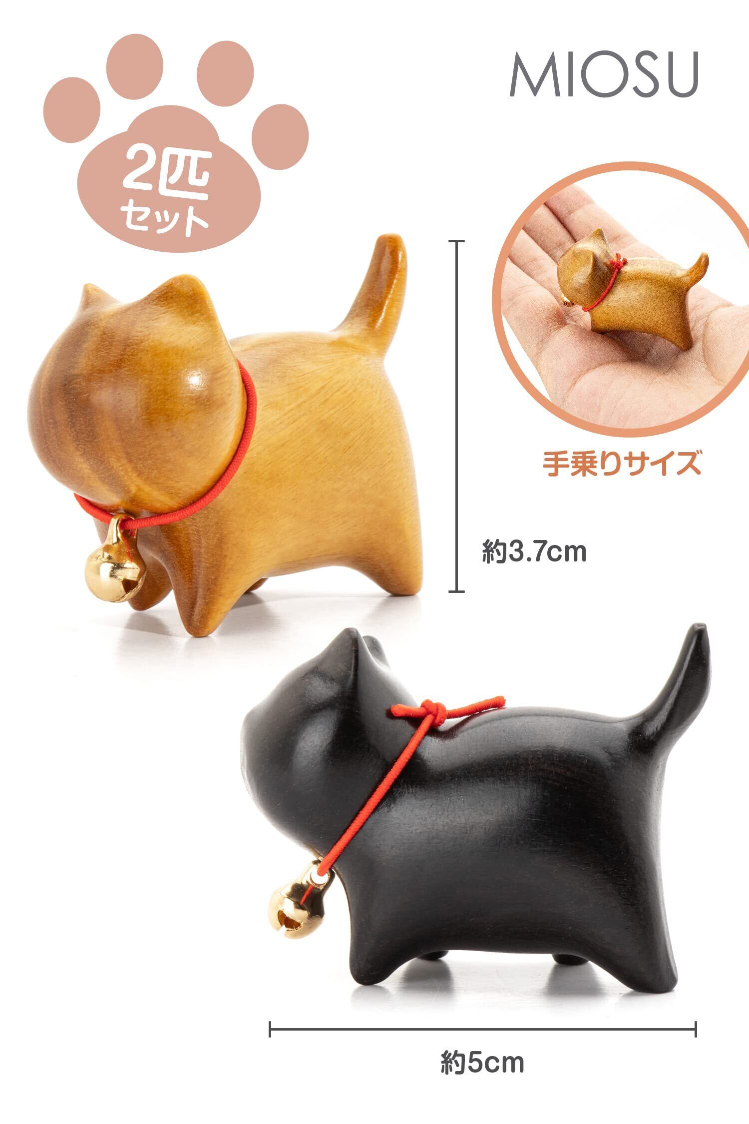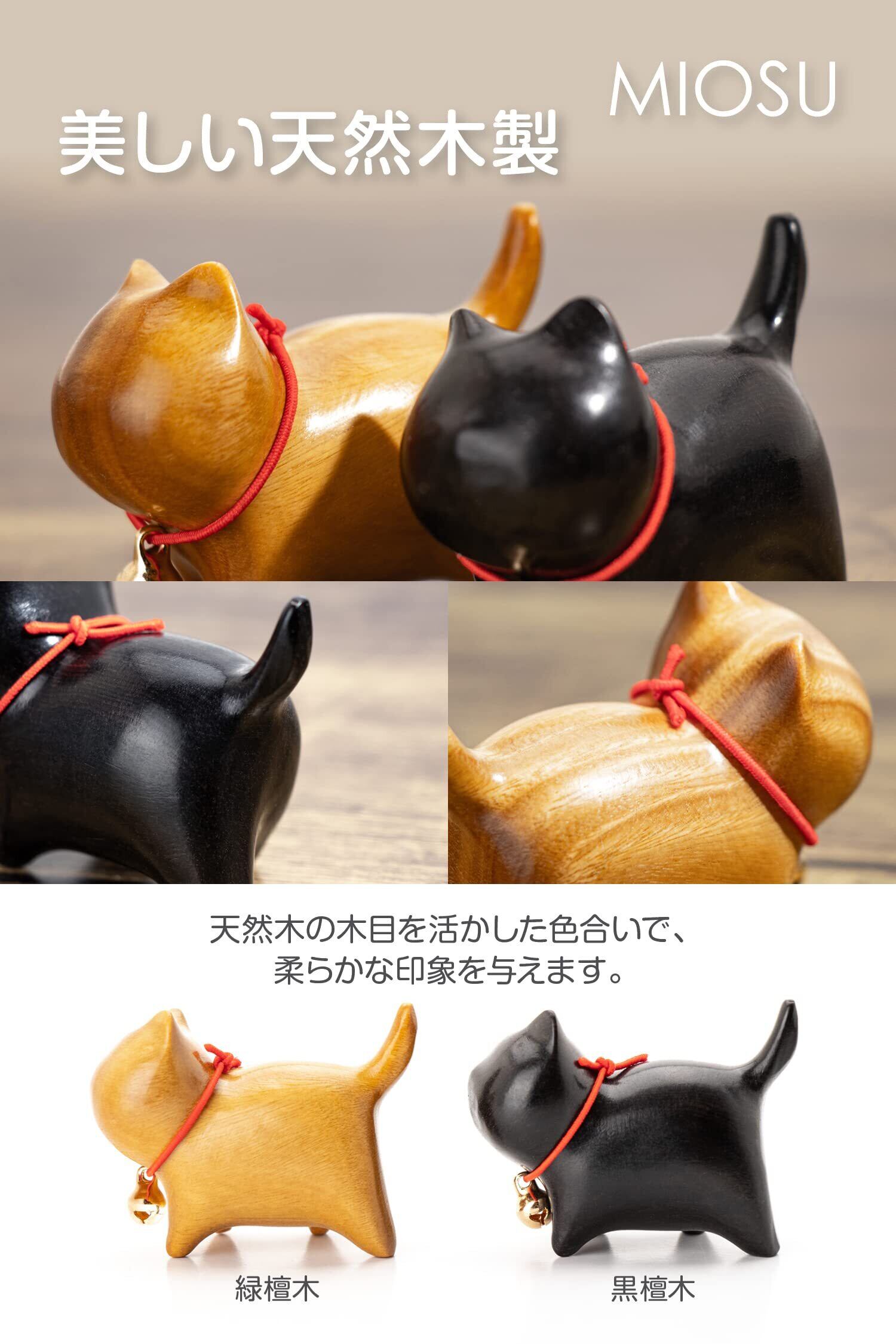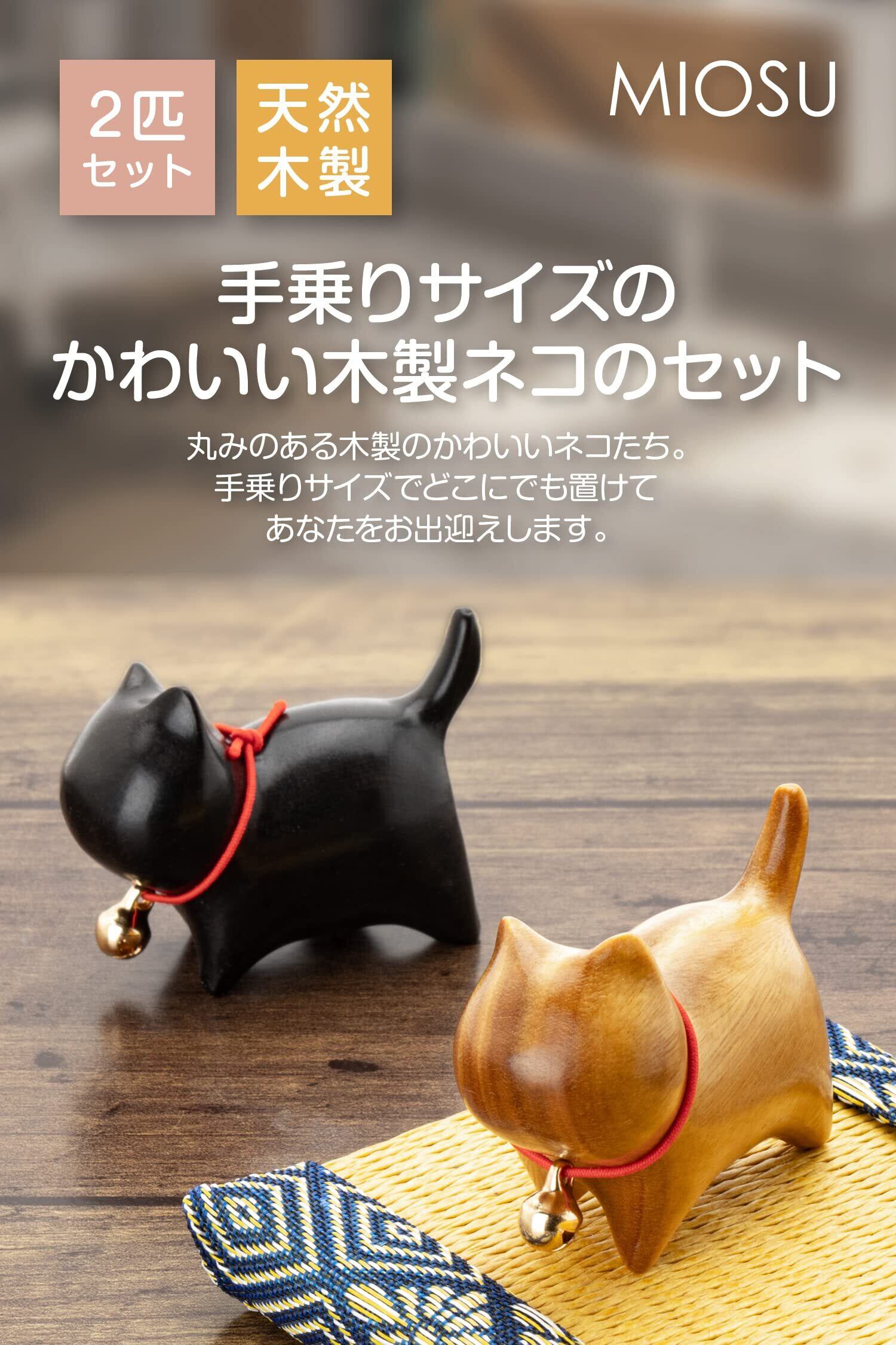 MIOSU 猫 ねこ 置物 招き猫 木製 インテリア 置き物 飾り 玄関 小物 雑貨 幸運 かわいい 小さい 2個セット プレゼント 贈り物