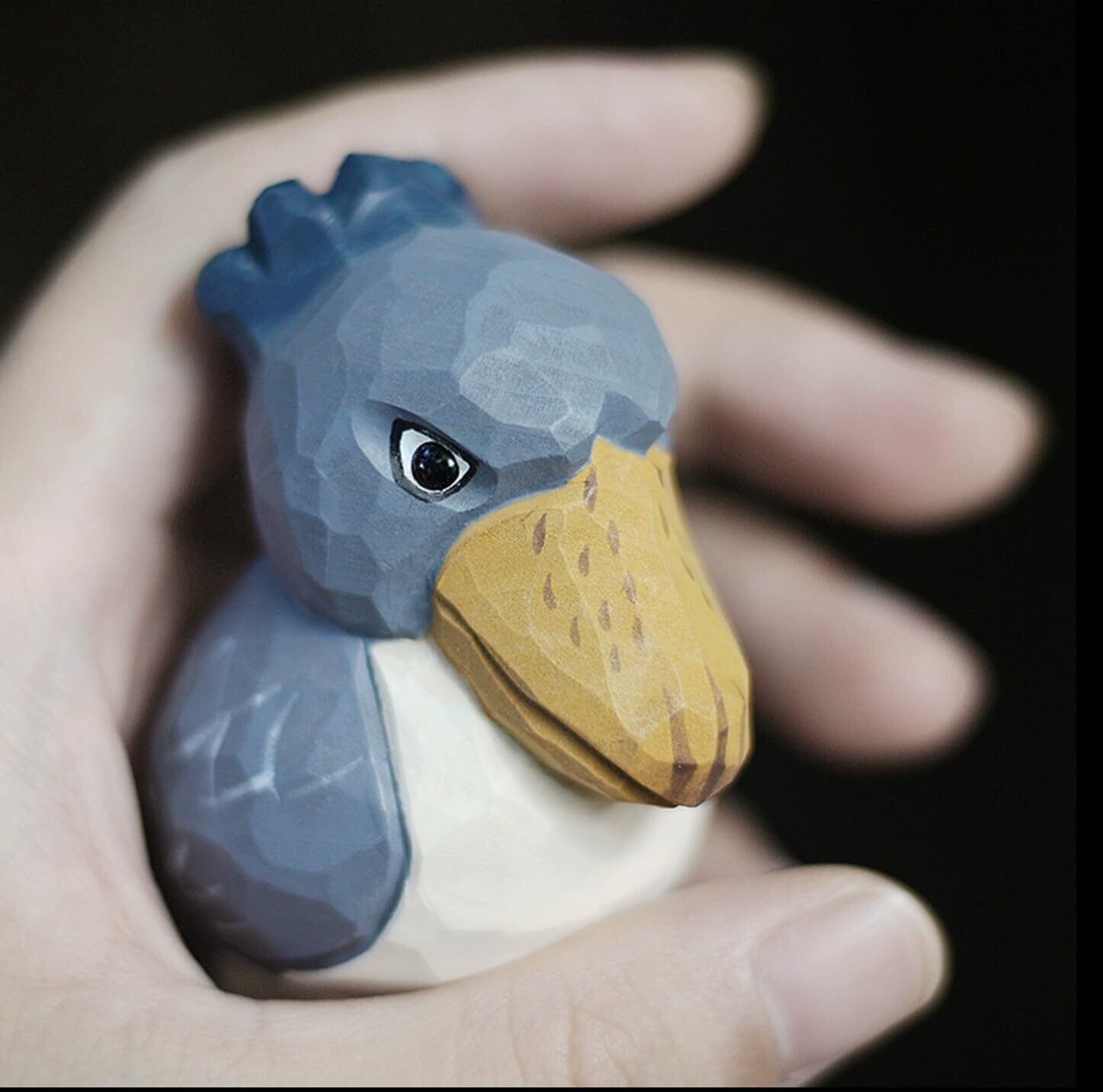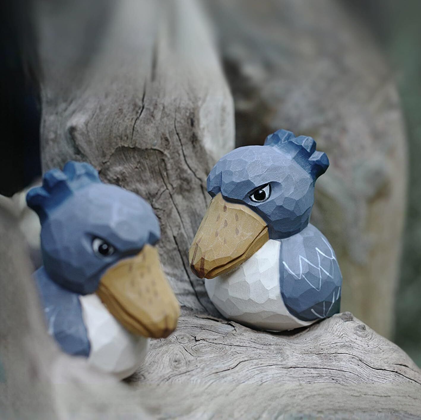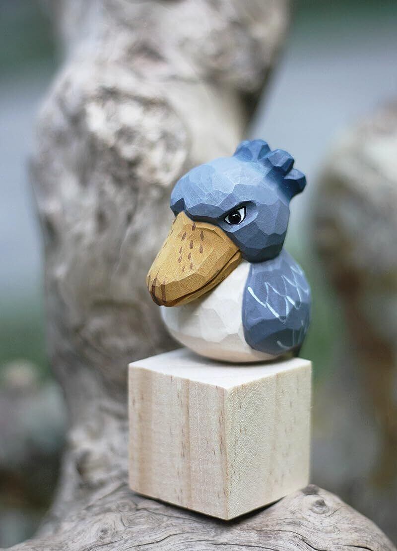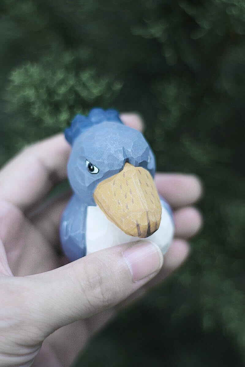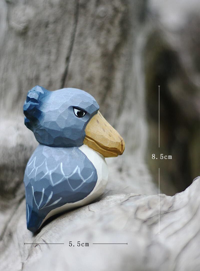 (hej!e) ハシビロコウ置物 子ハシビロコウ Shoebill 木彫 木製 オブジェ 北欧雑貨 インテリア 人形 手作り バスウッド 小 (ブルー)