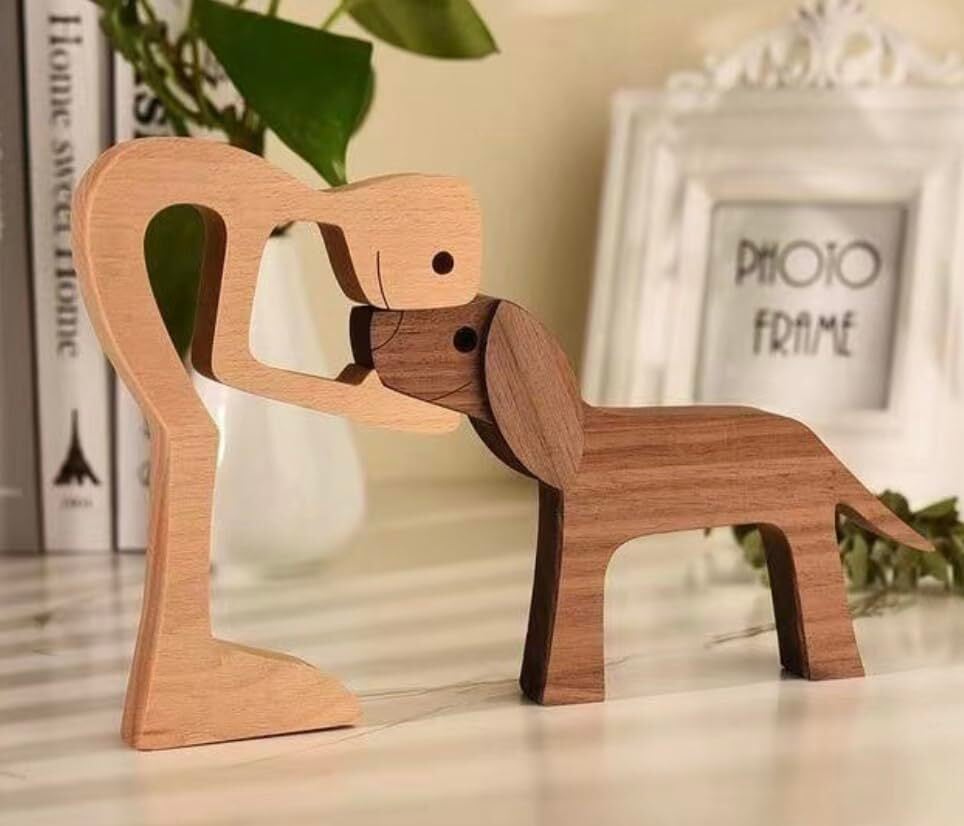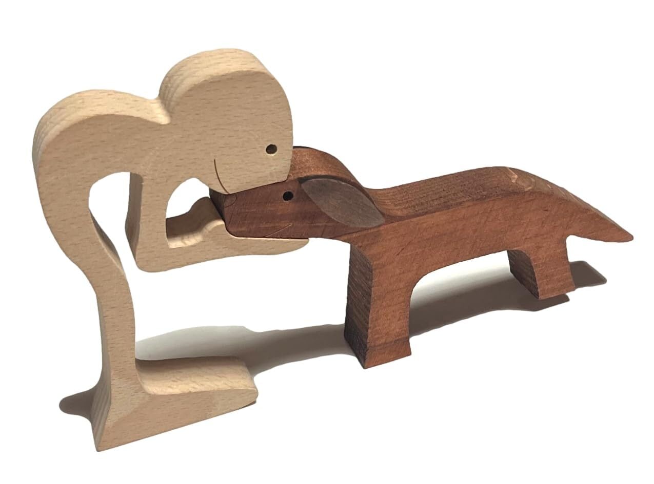 [Natura Style] 木製 インテリア 北欧 風 雑貨 愛犬家 置物 オブジェ (Boy & Dog)