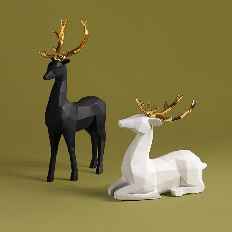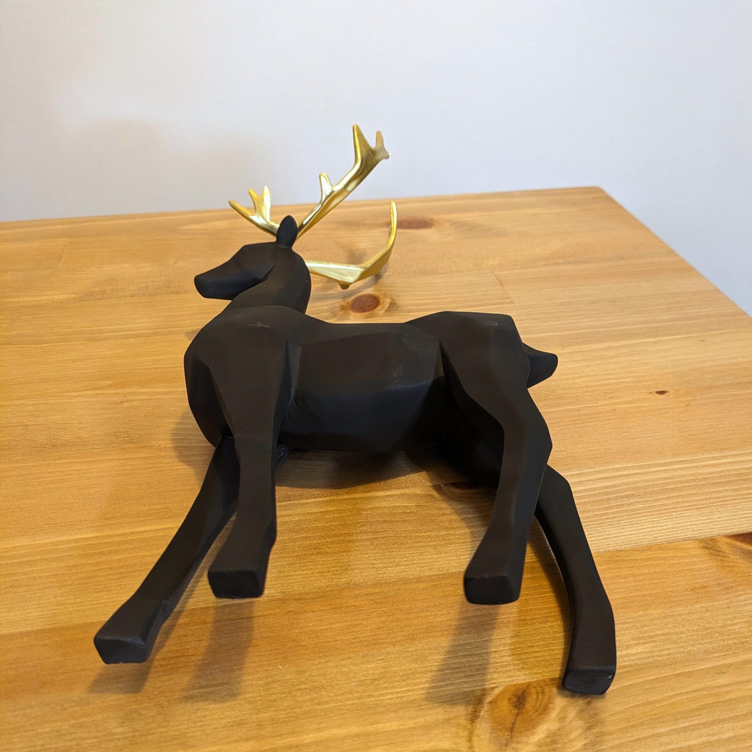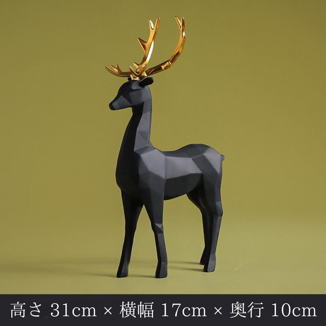 [HARGIO] インテリア インテリア雑貨 オブジェ 置物 おしゃれ 動物 フィギュア トナカイ 鹿 玄関 置き物 かわいい オシャレ雑貨 可愛い置物 黒 白 雑貨 可愛い 北欧 北欧雑貨 韓国 韓国雑貨 人気 プレゼント (ブラック)