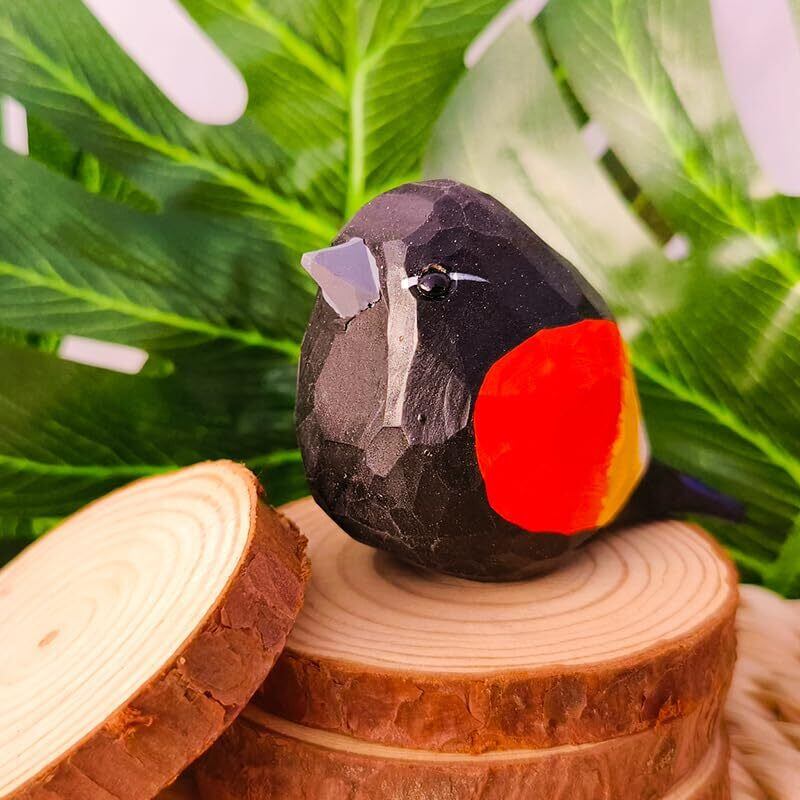 木製で優しく心温まる木彫の小鳥のオブジェです。