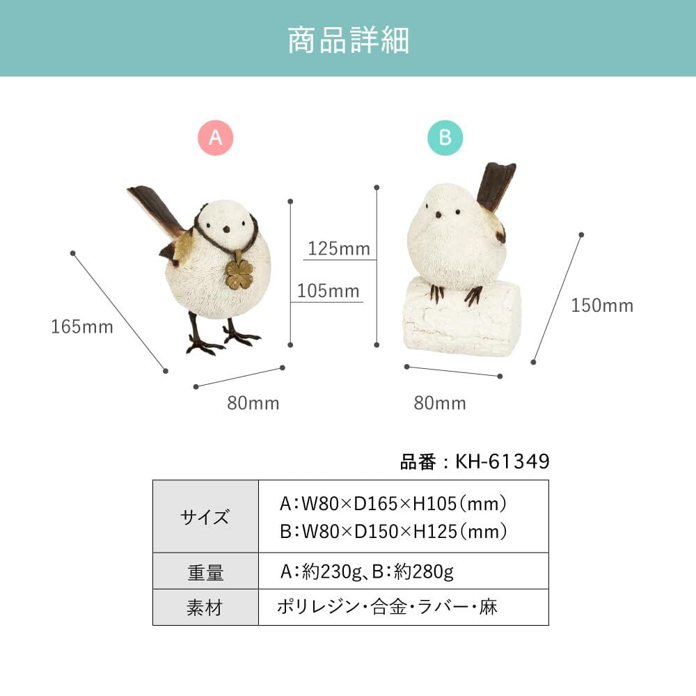 シマエナガ 鳥 ガーデンオーナメント オブジェ 置物 インテリア 2羽セット