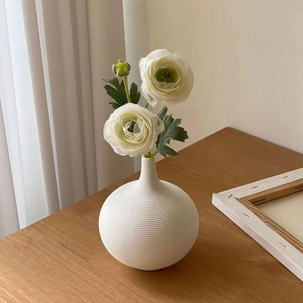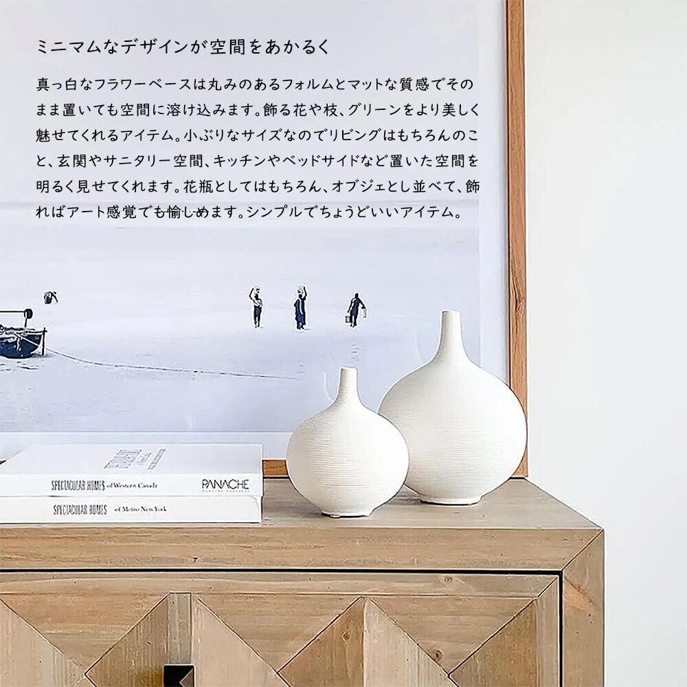 真っ白なフラワーベースは丸みのあるフォルムとマットな質感でそのまま置いても空間に溶け込みます。