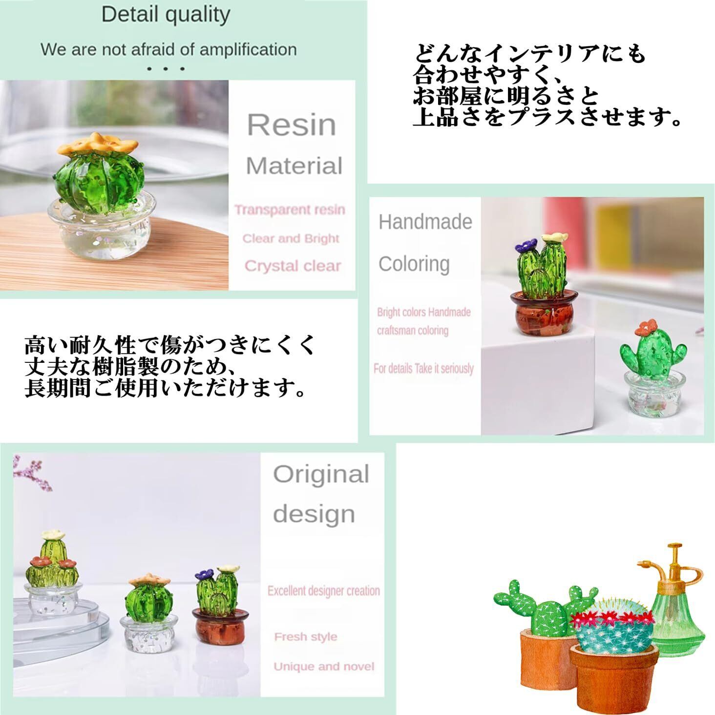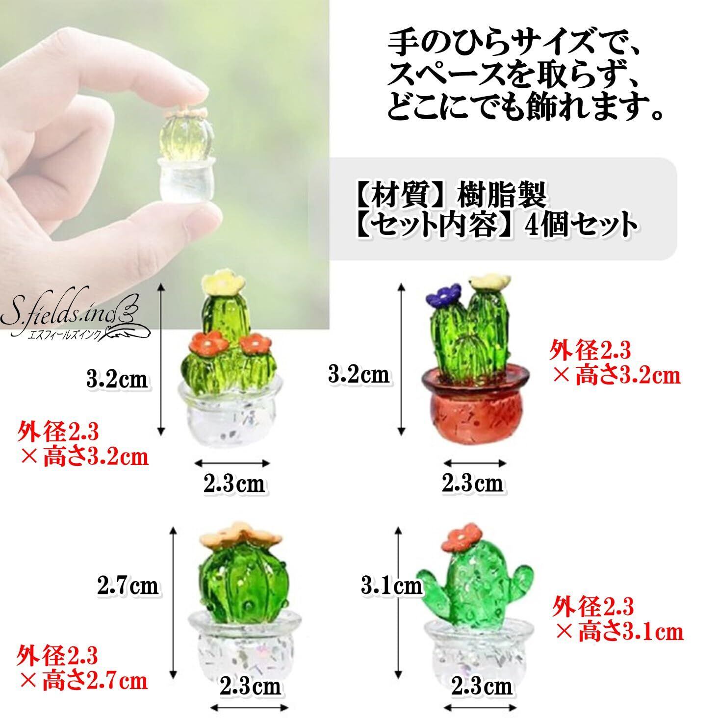S.fields.inc サボテン ミニオブジェ 置物 4個セット レジン 樹脂 インテリア 鉢植え 飾り物 透明