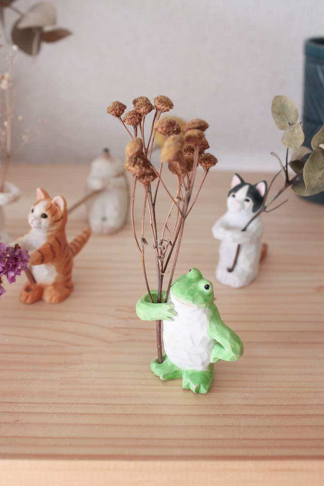 【数量限定】キーストーン オブジェ アニマル ドライフラワー ホルダー 4.8×2.5×5cm フロッグ DE050256
