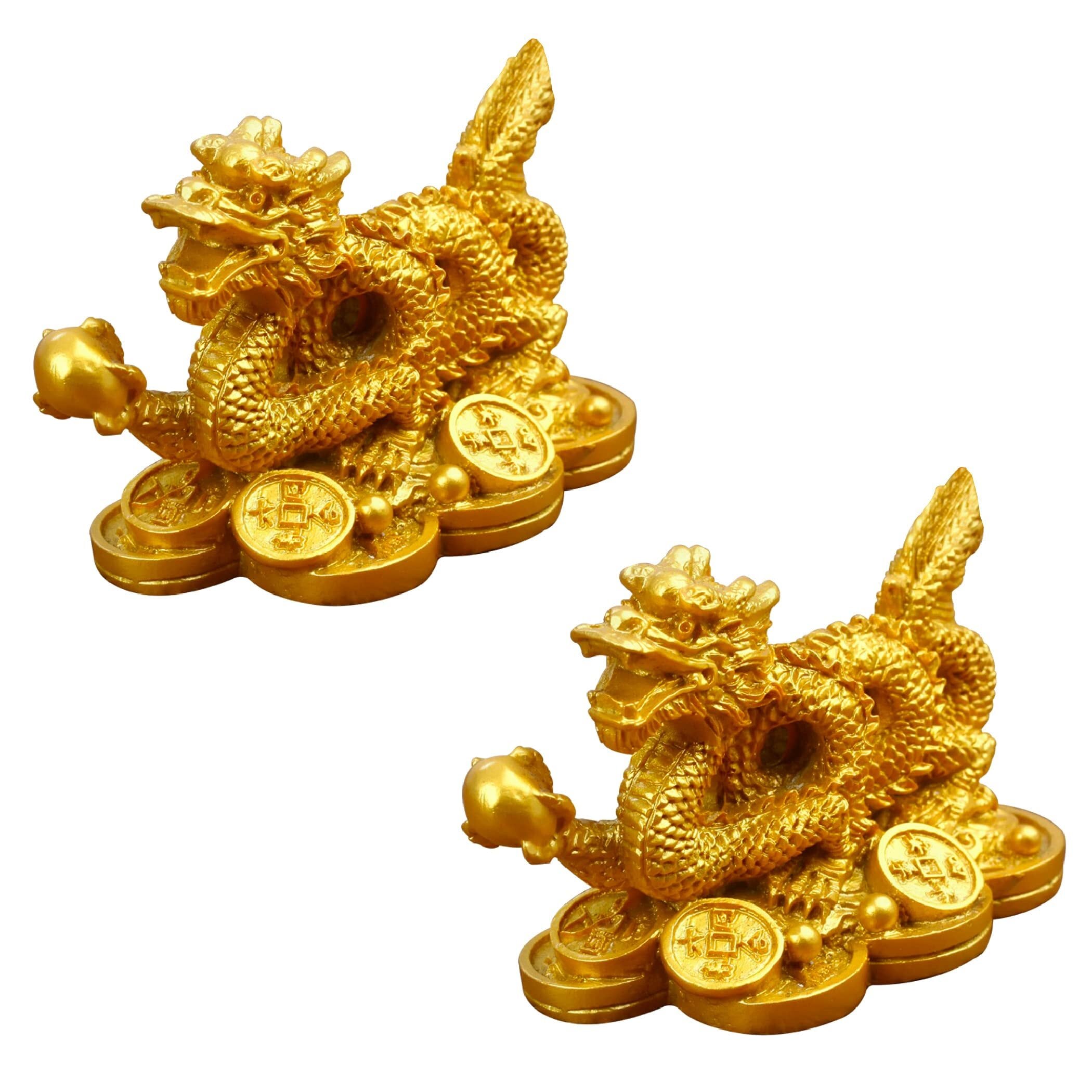 Felimoa 龍の置き物 龍 金運アップ 商売繁盛 風水グッズ 運気アップ 2点セット