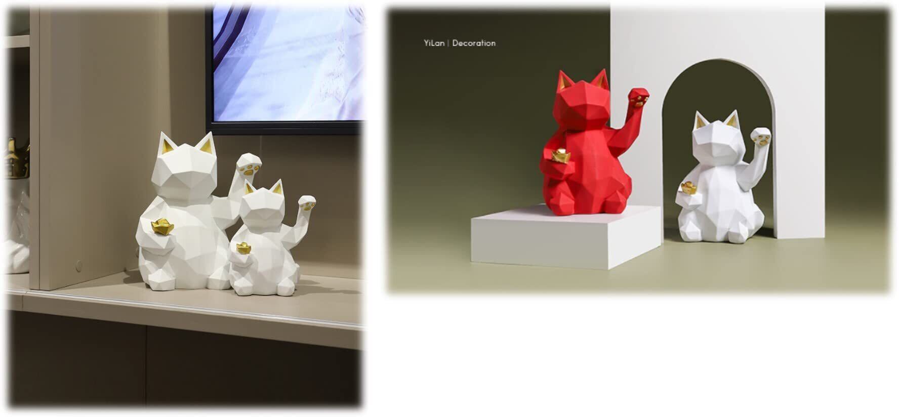 【CFT TIME】招き猫 置物 おしゃれ かわいい 北欧 ミニ 金 幸運 招福 インテリア シンプル アンティーク (small, 赤)