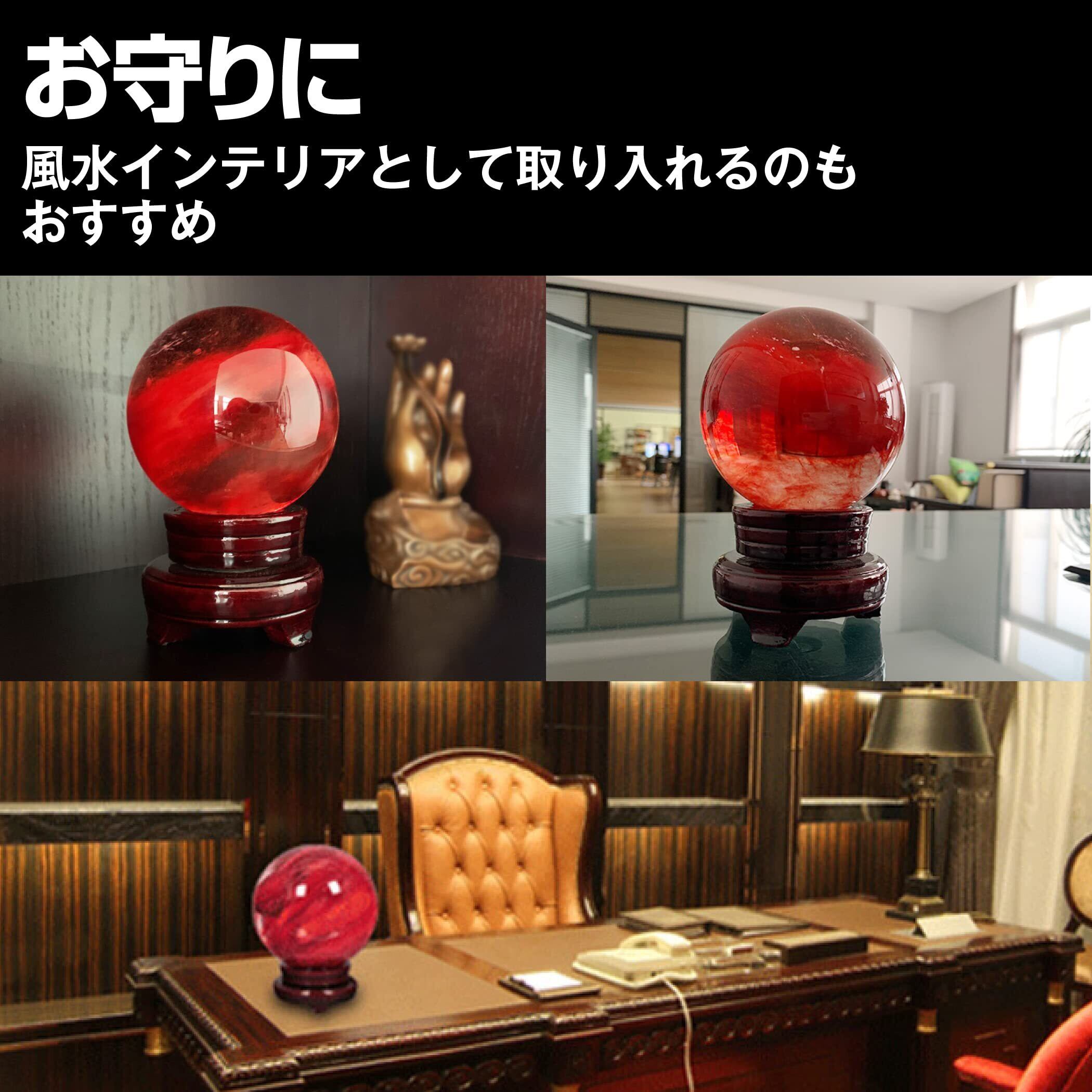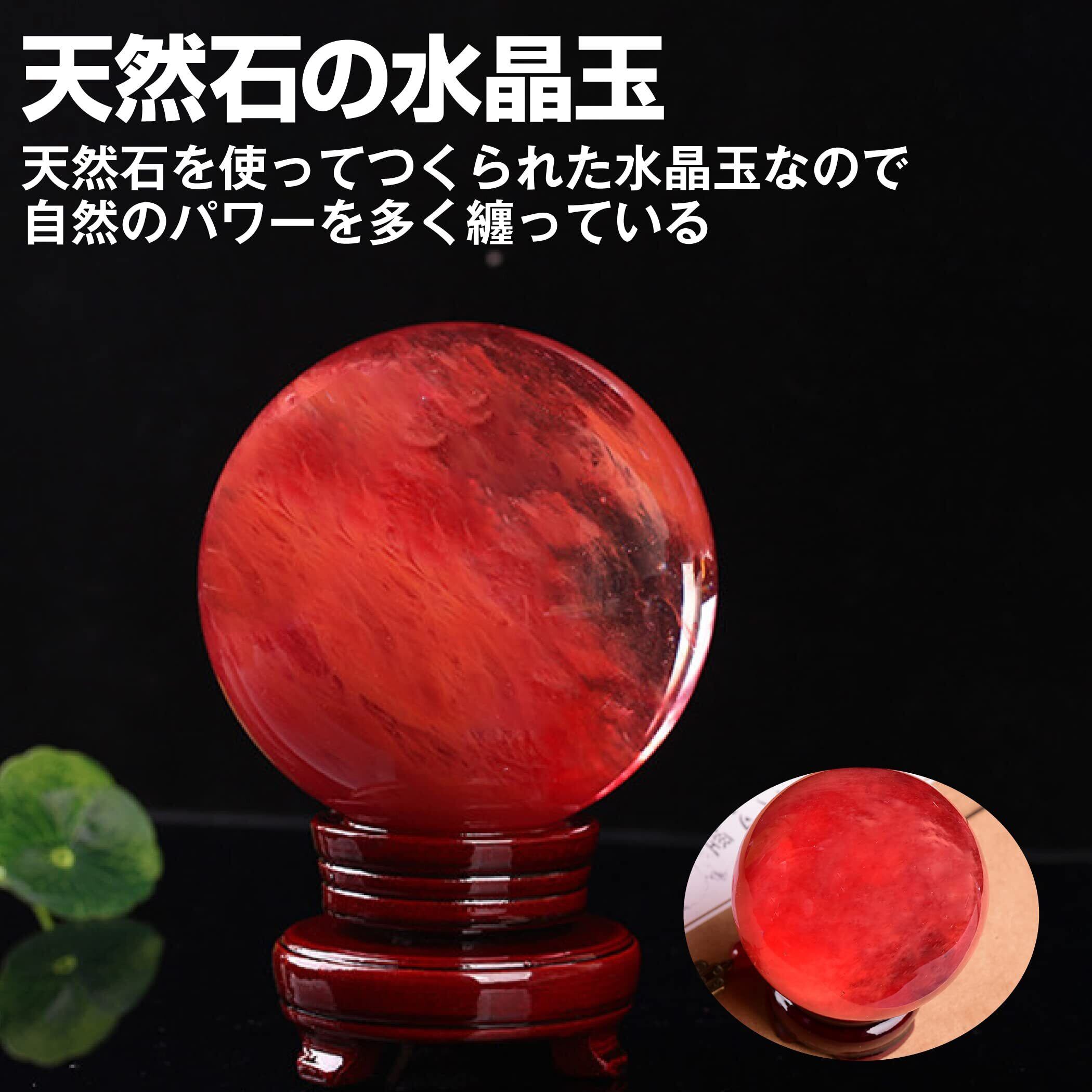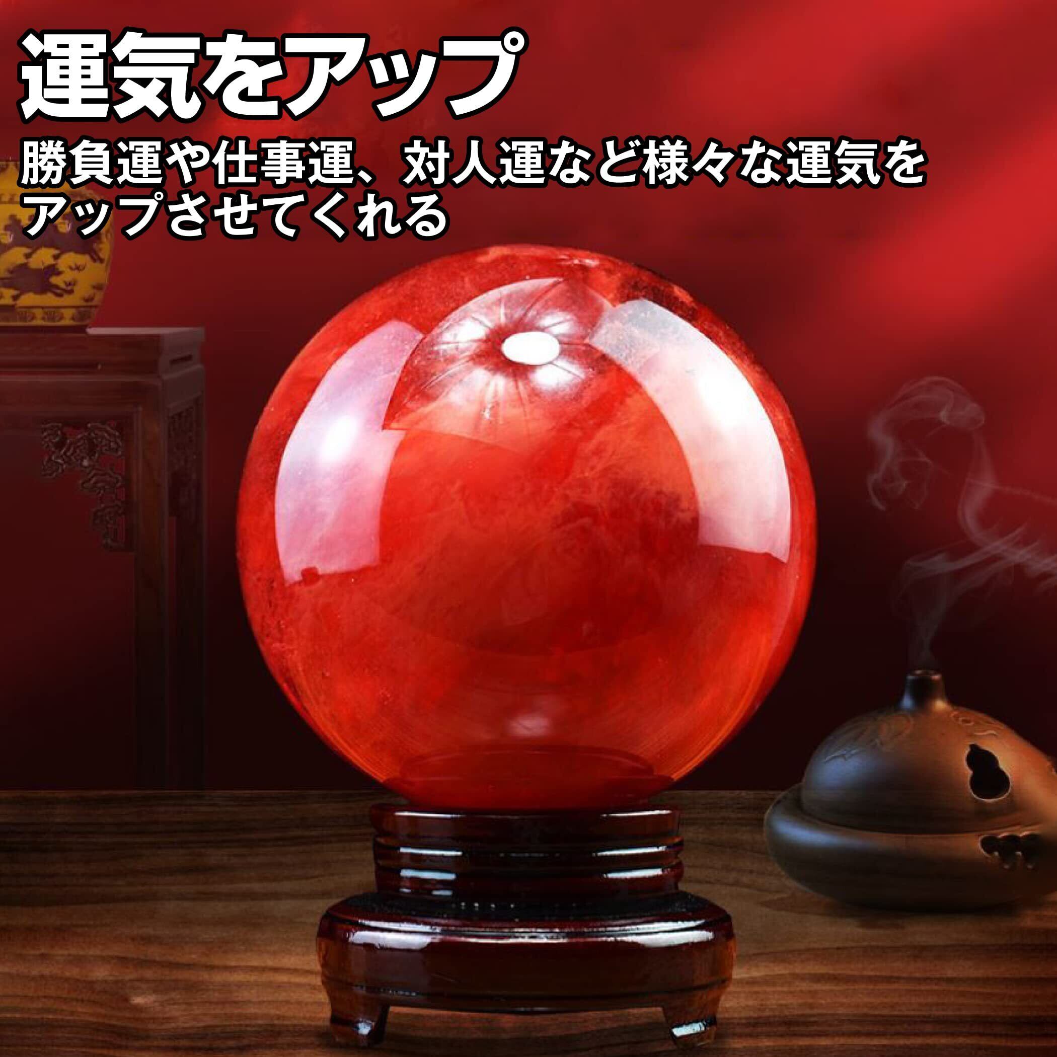HAMILO 赤水晶 パワーストーン 水晶玉 風水 縁起物 木製台座付属