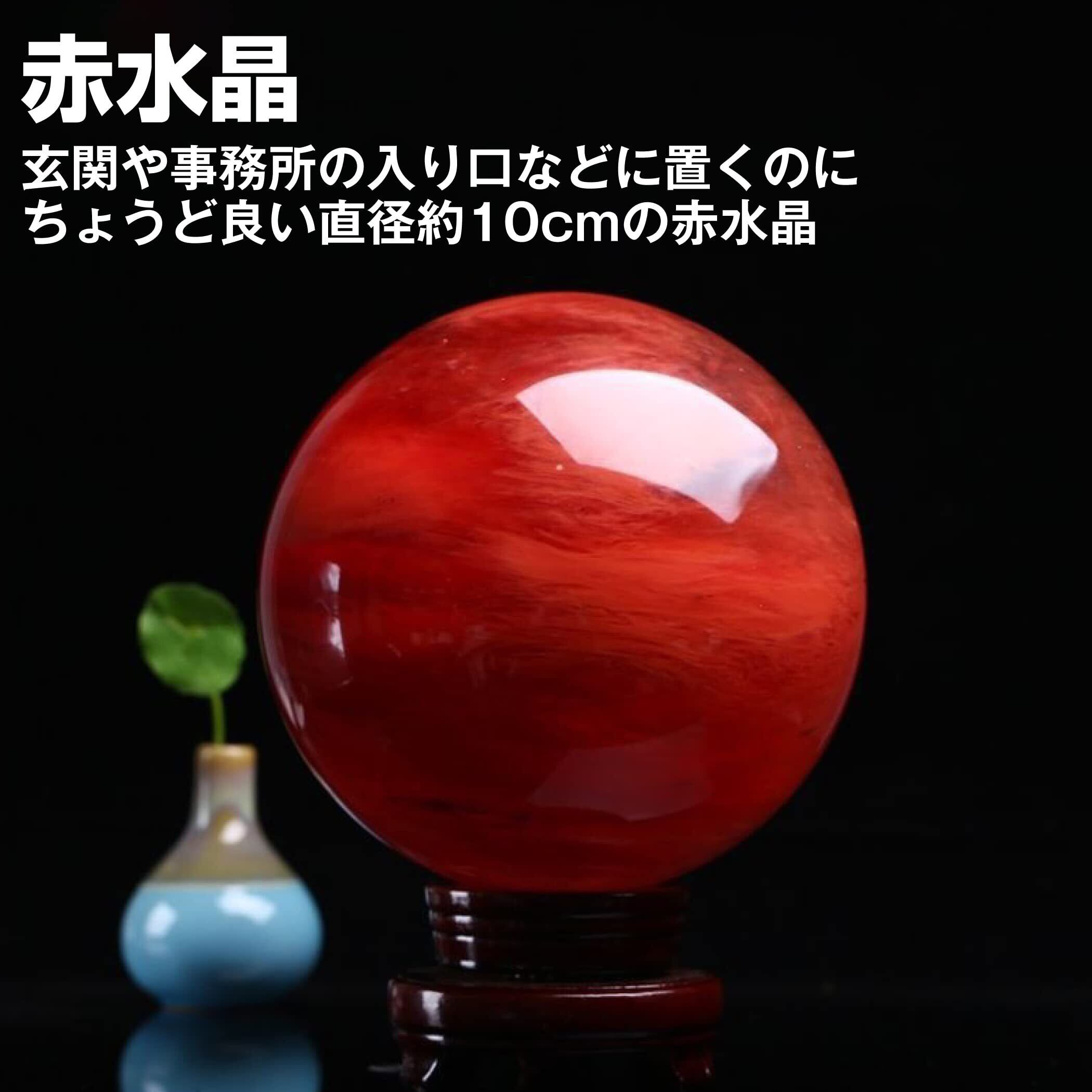 直径約10cmの赤水晶:玄関や事務所の入り口などに置くのにちょうど良い直径約10cmの赤水晶です。木製台座が付属しているので、安定感のある状態で飾りやすいです。
