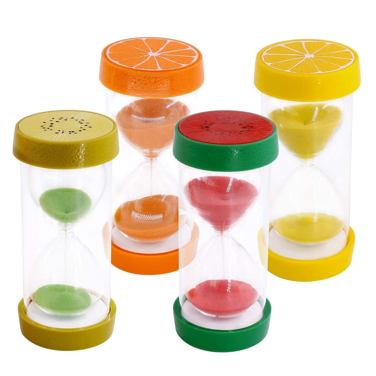 Vukayo 砂時計 カラフル5分 10分 15分 30分 45分 60分 キッズ 教室用 砂時計 オフィス用 砂時計 キッチン用 インテリアタイマー フルーツ風 砂時計 SGSL-01 (5分.10分,15分,30分, 4点セット)