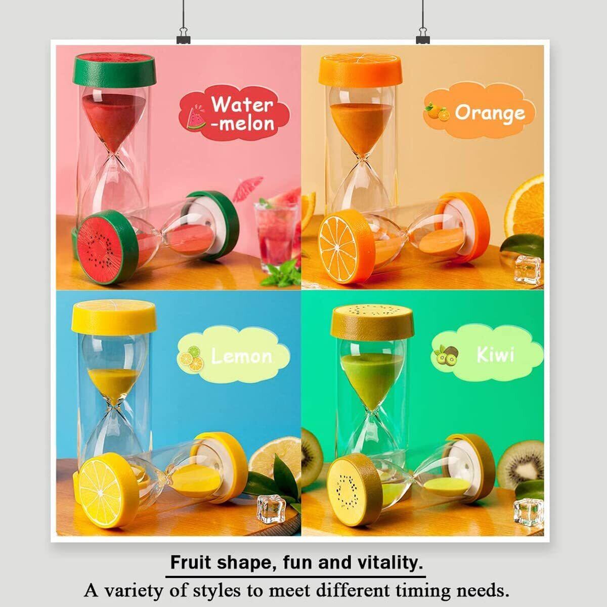 【フルーツ風な砂時計】スイカ、オレンジ、レモン、キウイの4種類のかわいい形の砂時計は、伝統的な砂時計のイメージを突破して、家に置いてもかわいい装飾品です。
