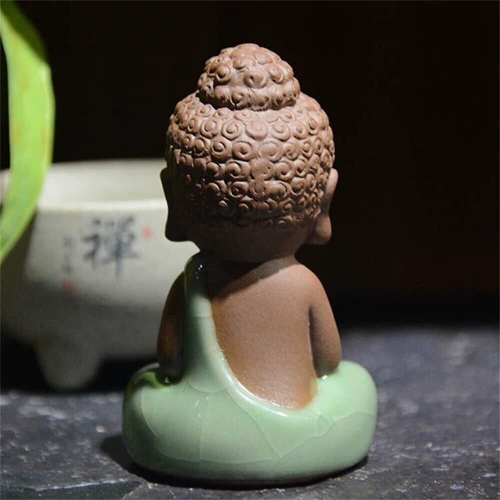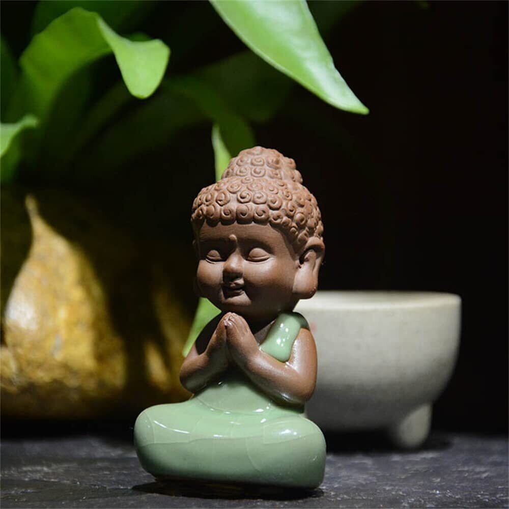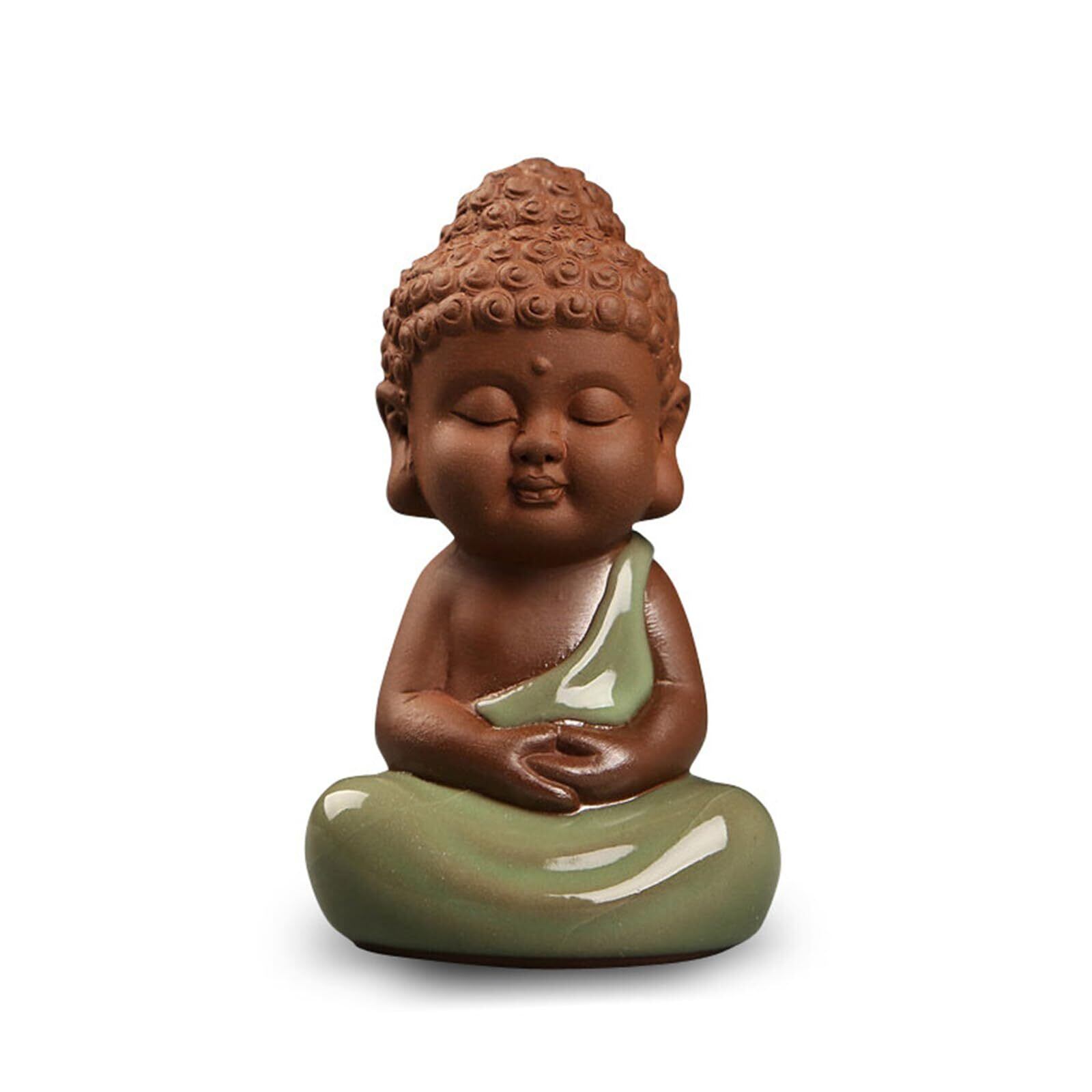 Temiry お釈迦様 オブジェ お釈迦 かわいい 仏像 陶器 座禅 如来像 ミニ (タイプ4 手を握る-グリーン)