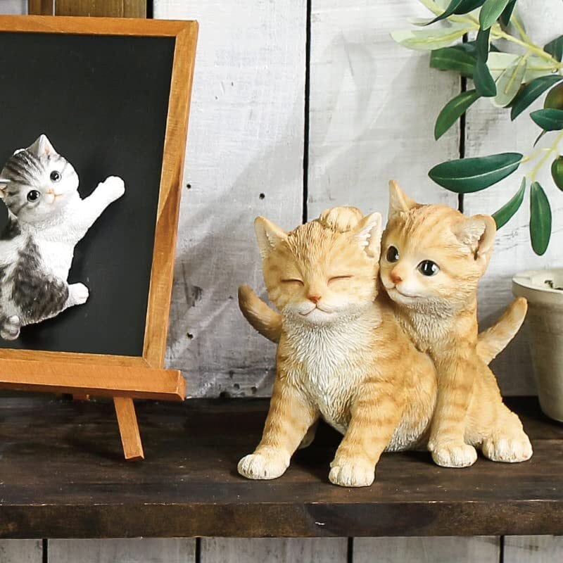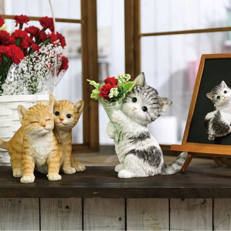 【じゃれあう2匹の可愛い子猫】2匹のじゃれあう姿に癒されます。お庭のガーデニングオブジェに加えたり、お部屋のインテリアとして飾ると、癒しの空間に。