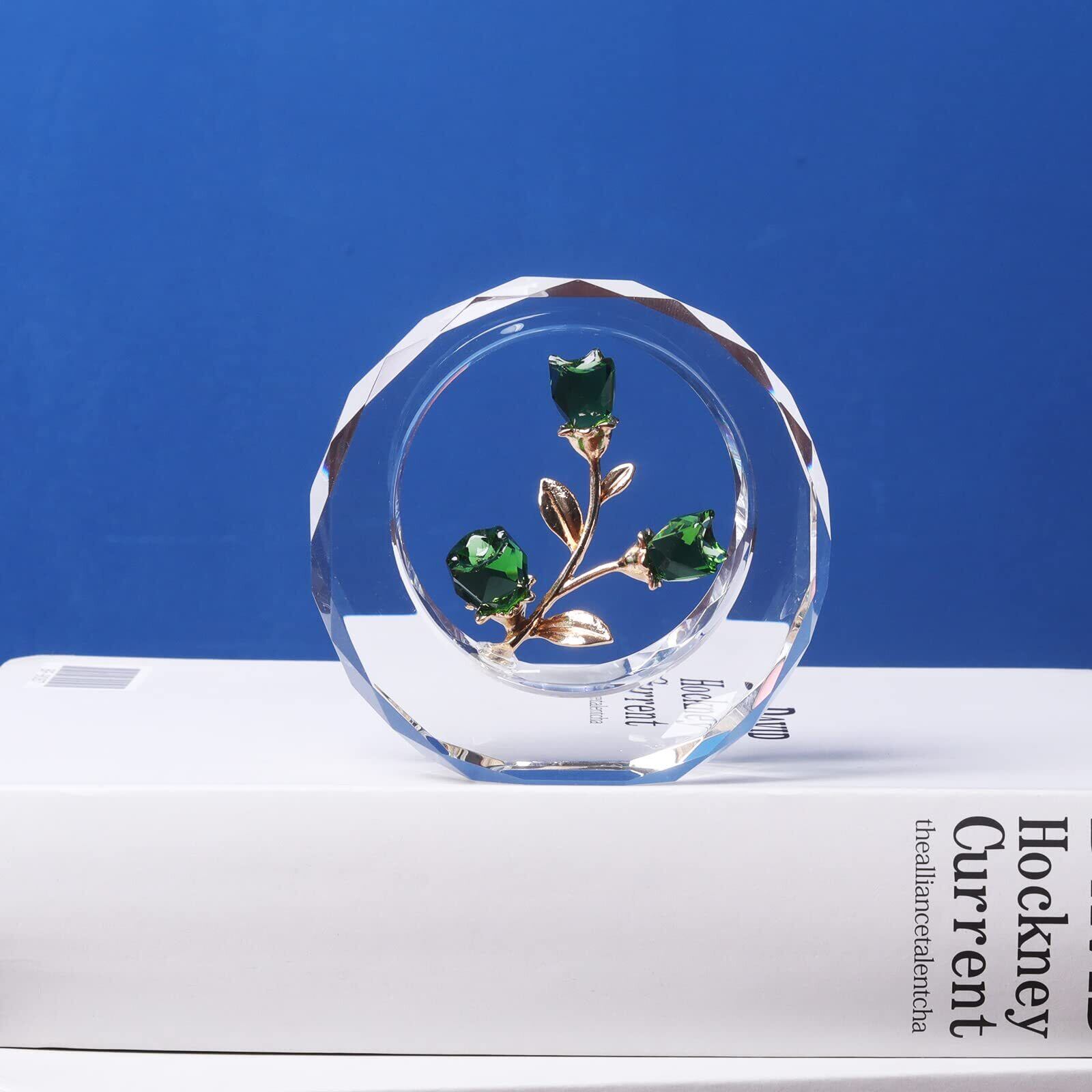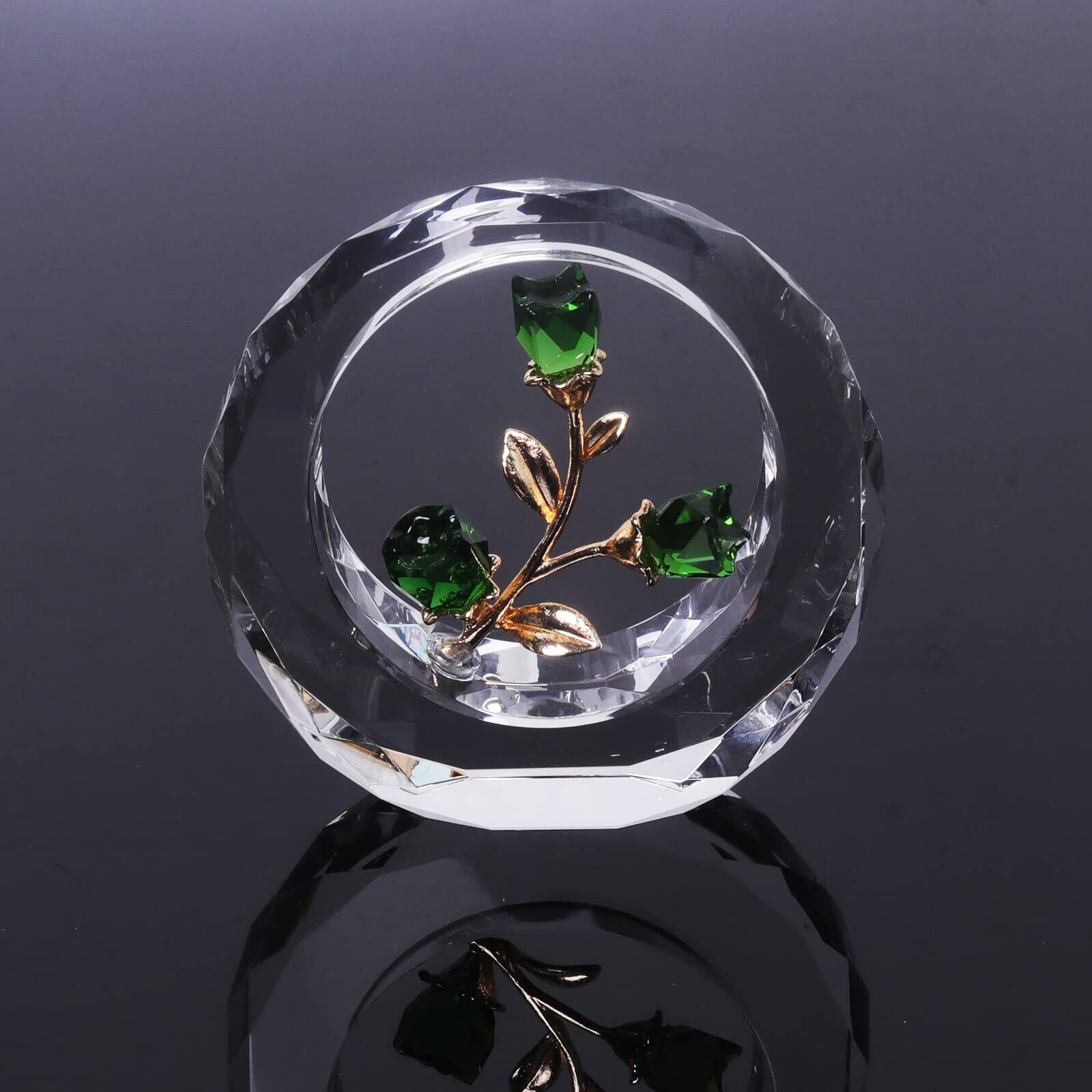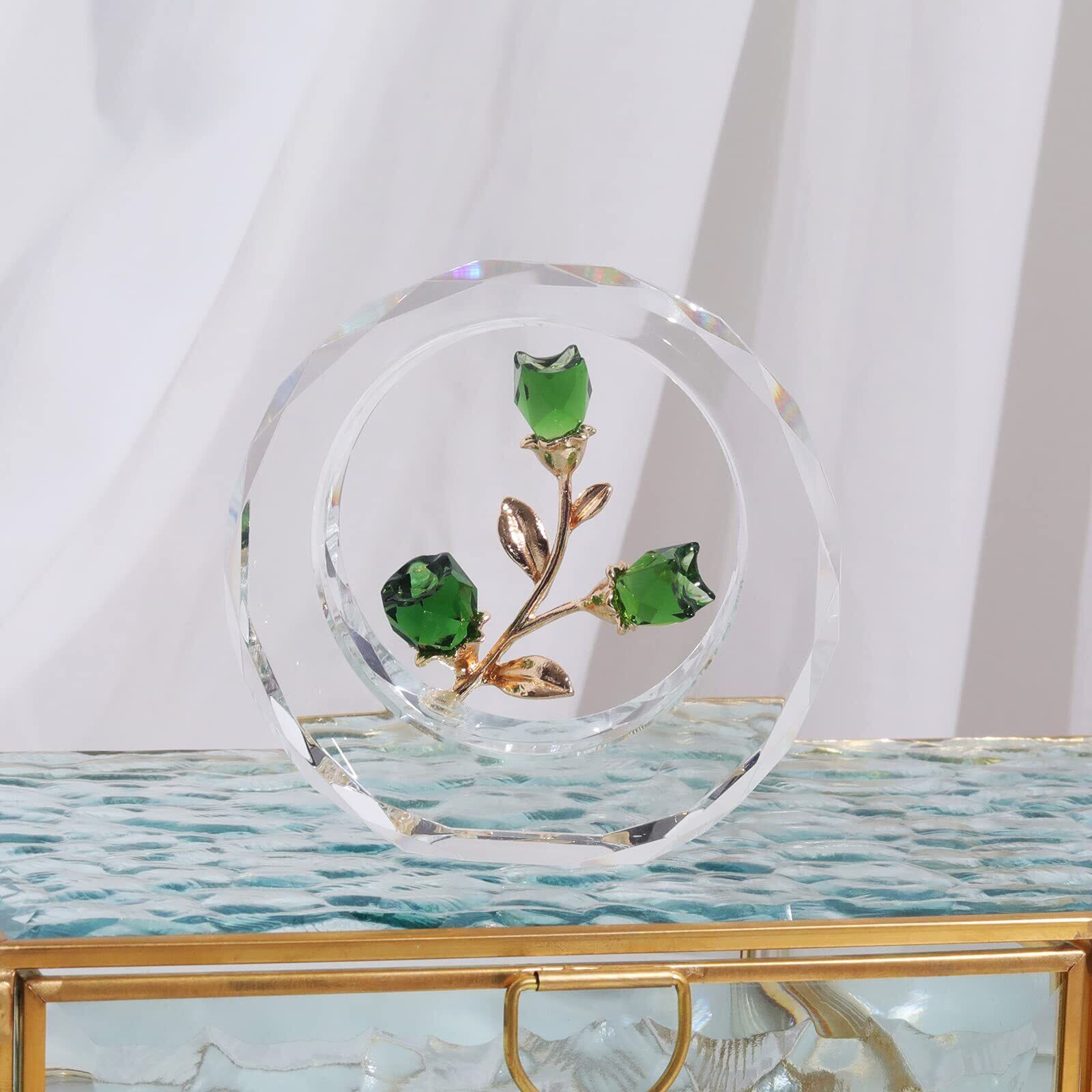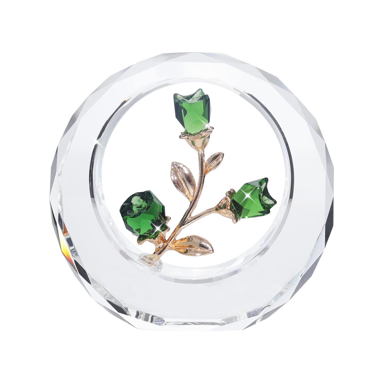SWTHONY クリスタルチューリップ花彫像外円環ガラス花束コレクション彫像家居装飾紙装飾結婚記念日プレゼント誕生日プレゼント母の日プレゼント(グリーン)