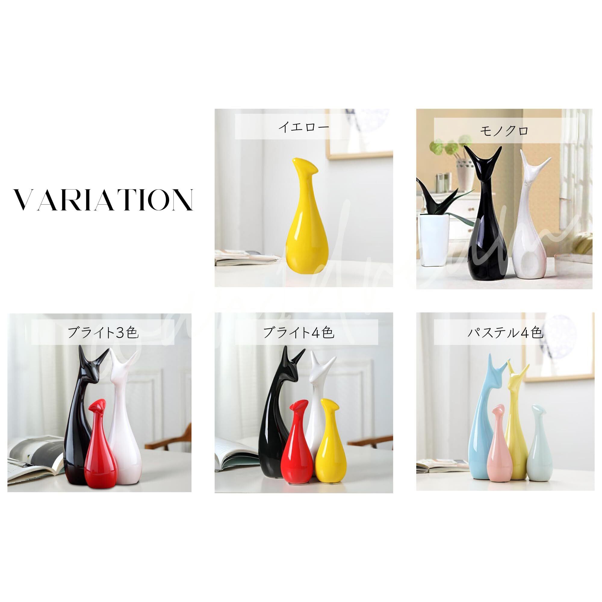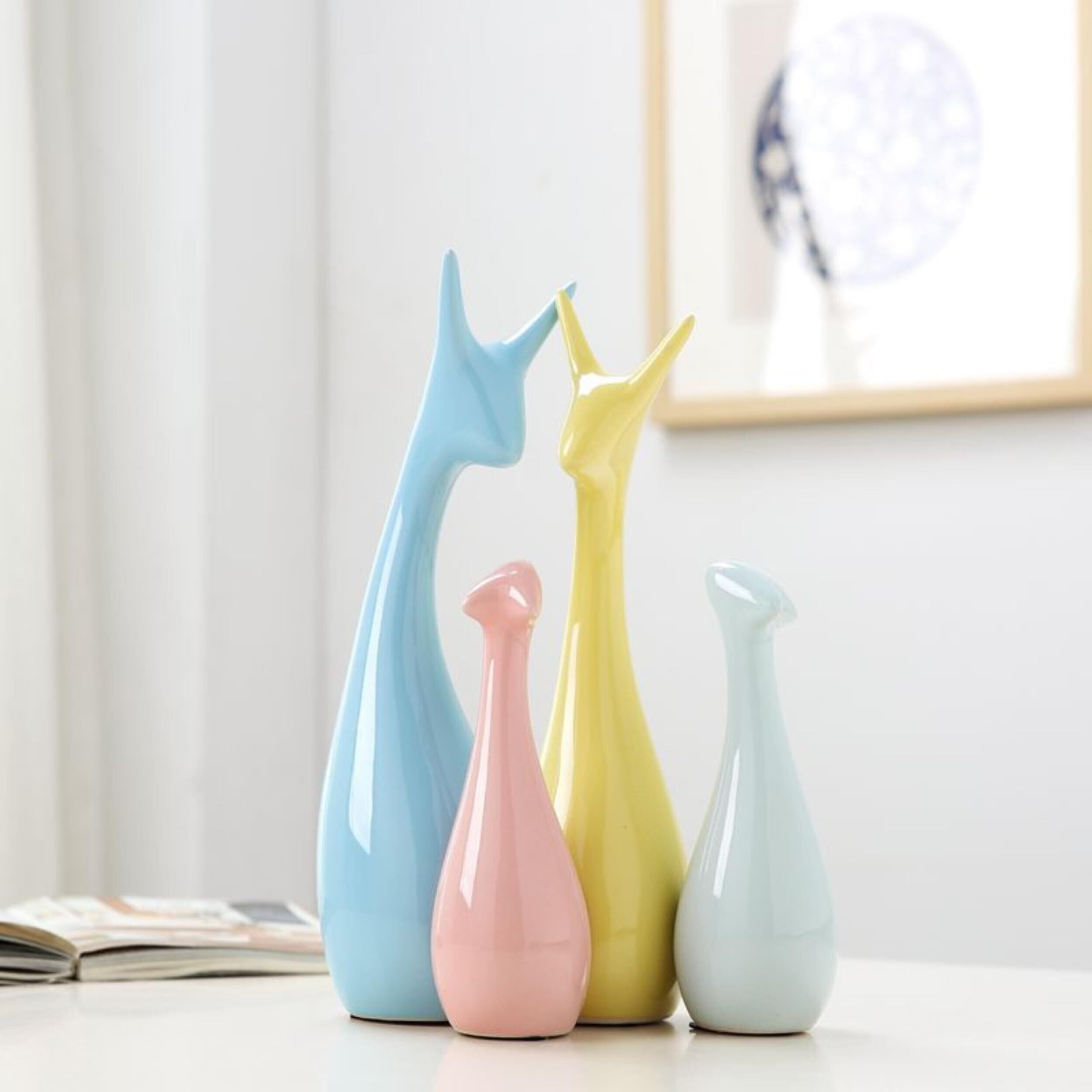 アニマルファミリー 北欧系インテリア【大サイズ】 陶器製オブジェ (パステル【4色】)