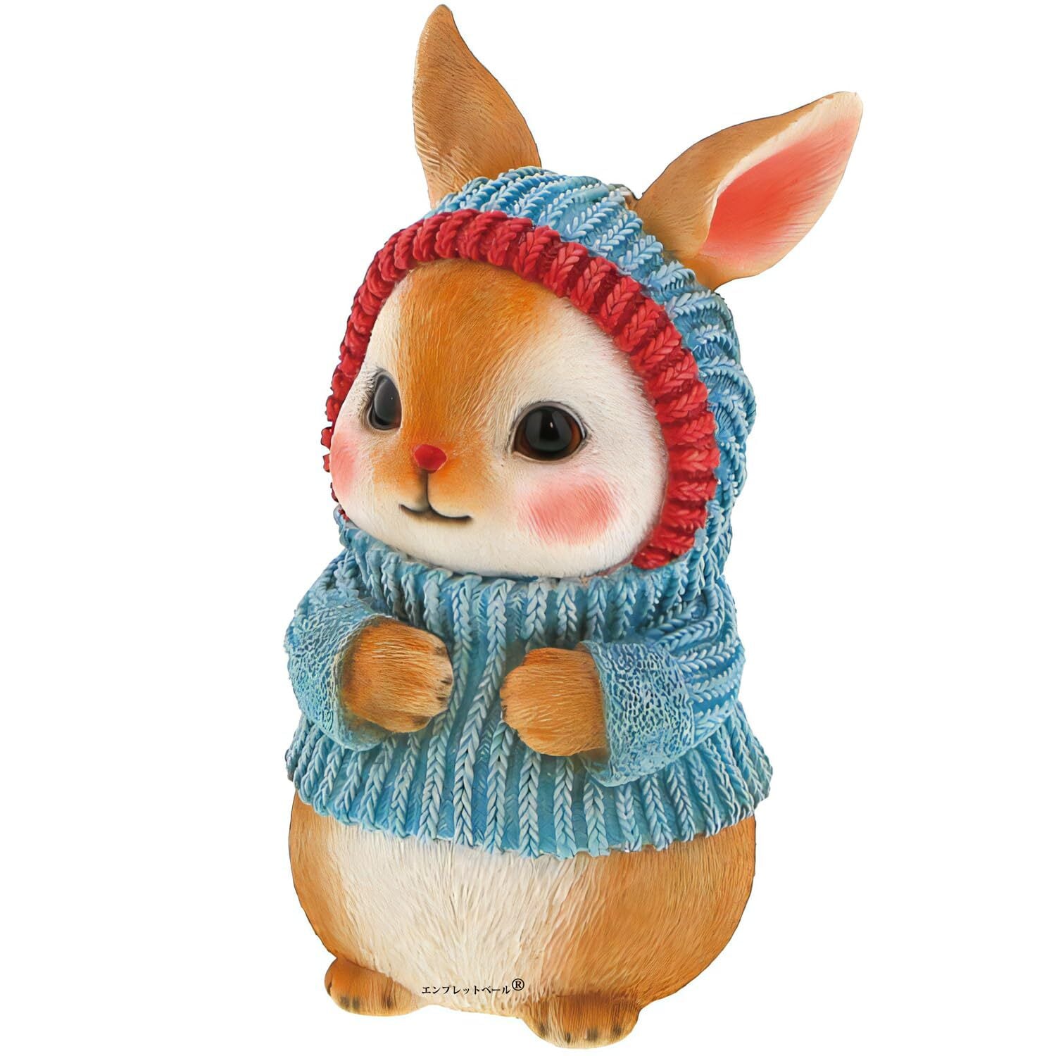 リアルすぎてドキッとするほど本物そっくりなウサギの ガーデンオーナメント ニットキャップをかぶってあったかい 兎好きな人へのプレゼント オブジェ 置物 エンプレットベール