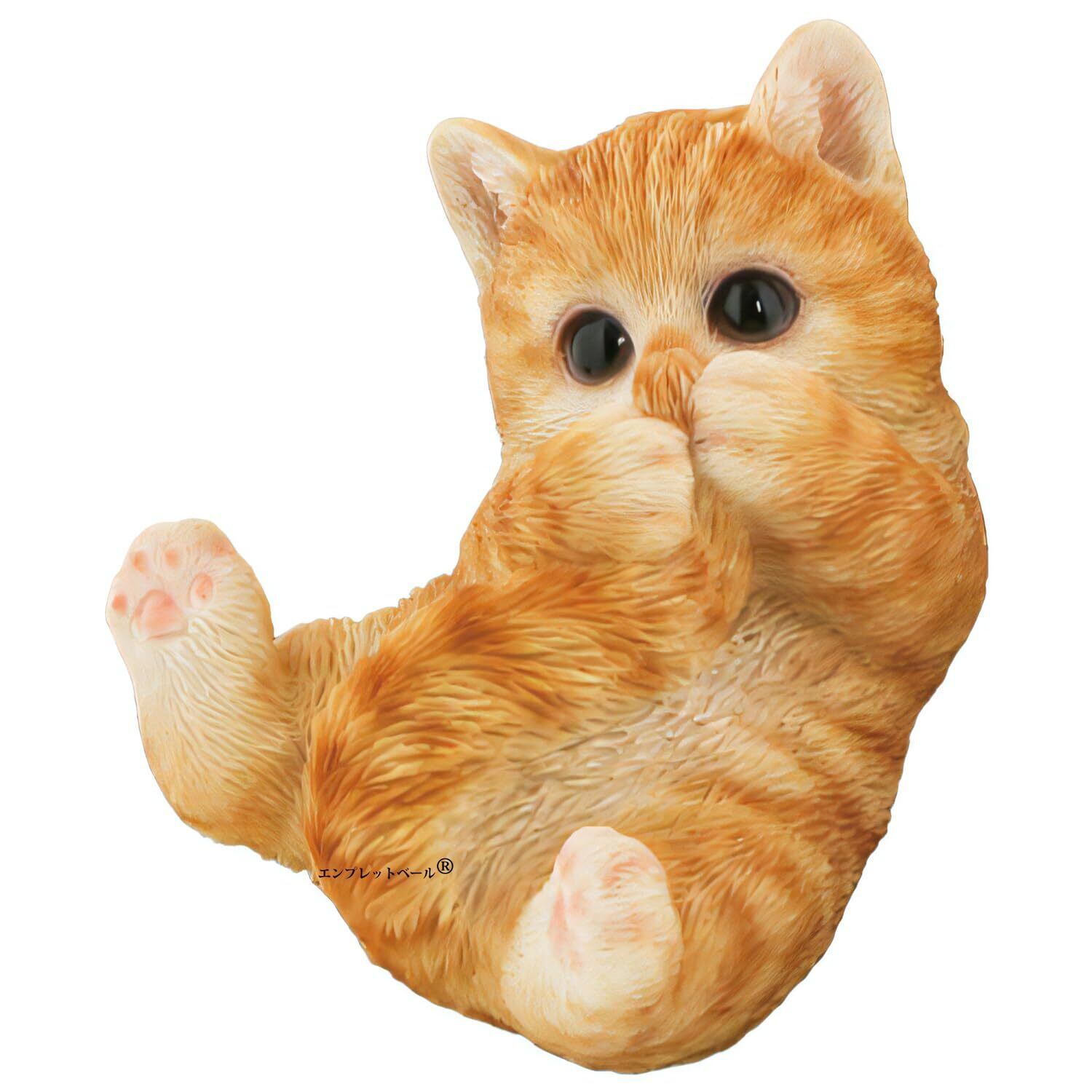 リアルすぎてドキッとするほど本物そっくりなネコの ガーデンオーナメント シッポをハムハム 茶トラ白 子猫 猫好きな人へのプレゼント オブジェ 置物 エンプレットベール