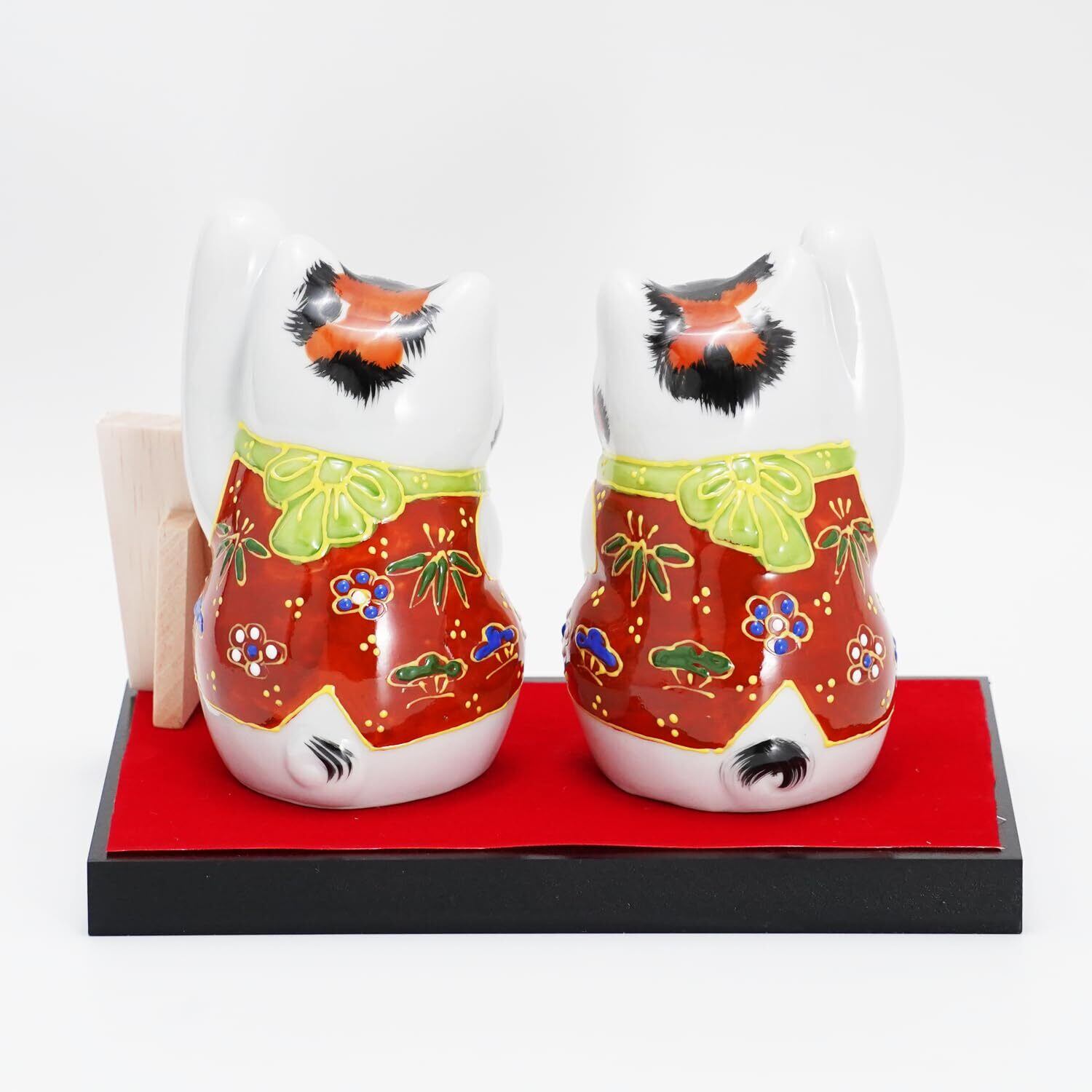 左右で異なる動作の猫: 右手を挙げた招き猫は「金運」を、左手を挙げた招き猫は「人を招く」とされています。2つの猫がセットになって、様々な幸運を呼び寄せます。