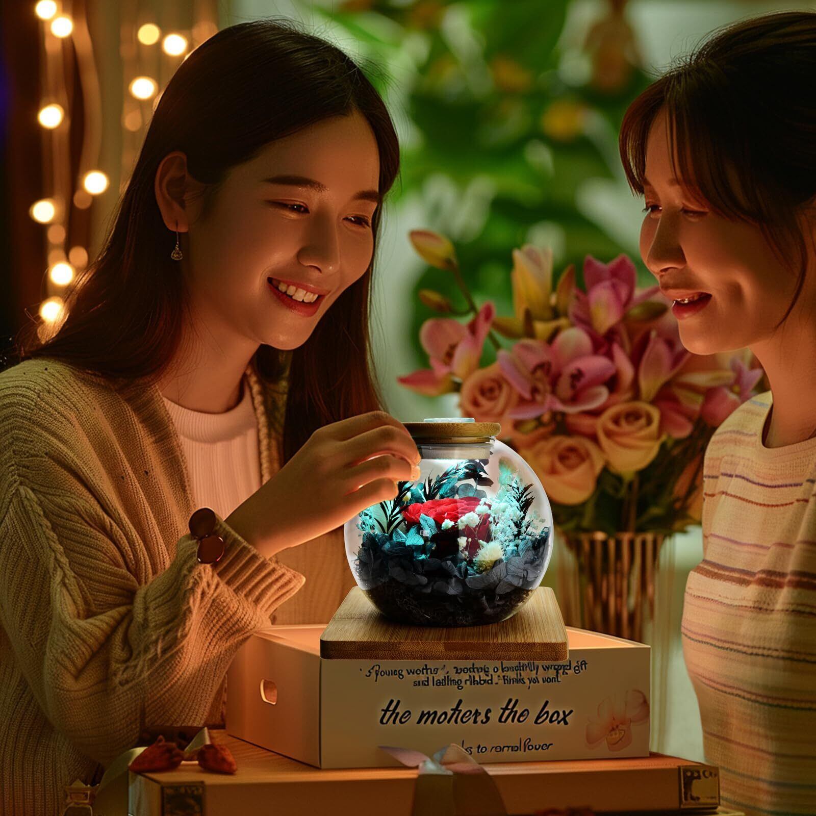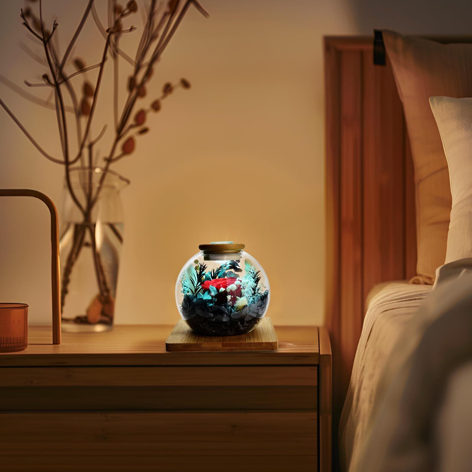 エターナルフラワーと彩光魔法:LEDキャップ内蔵のアトモスフィアライトは、リモコン遠隔操作により、触れることなくLEDキャップの明るさと色調を自在に調整。滑らかな明るさ調整機能と多彩なカラー変化が可能で、多様な雰囲気選択を提供し、住空間の雰囲気を大幅に豊かにし、居住の幸福感を高めます。