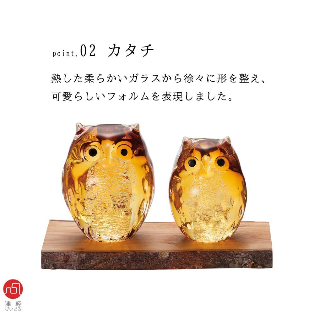 アデリア(ADERIA) 津軽びいどろ 置き物 親子ふくろう アンバー金 日本製 化粧箱入り インテリア オーナメント 可愛い 鳥 ギフト 女性 母の日 父の日 夫婦 男性 引越し祝い 結婚 挨拶回り プチ 退職 プレゼント 誕生日 贈り物 FS71522