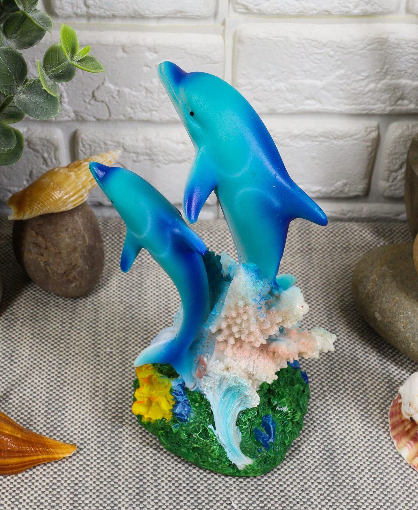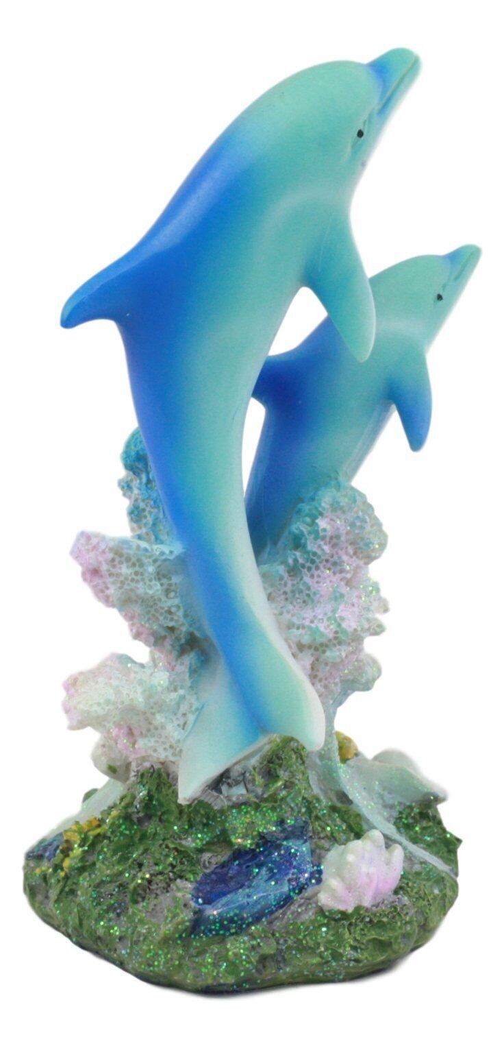 Ebros Sea World 2本のボトルノーズイルカ 水泳 コーラルリーフ 像 高さ5.5インチ 海洋 海洋 装飾 置物
