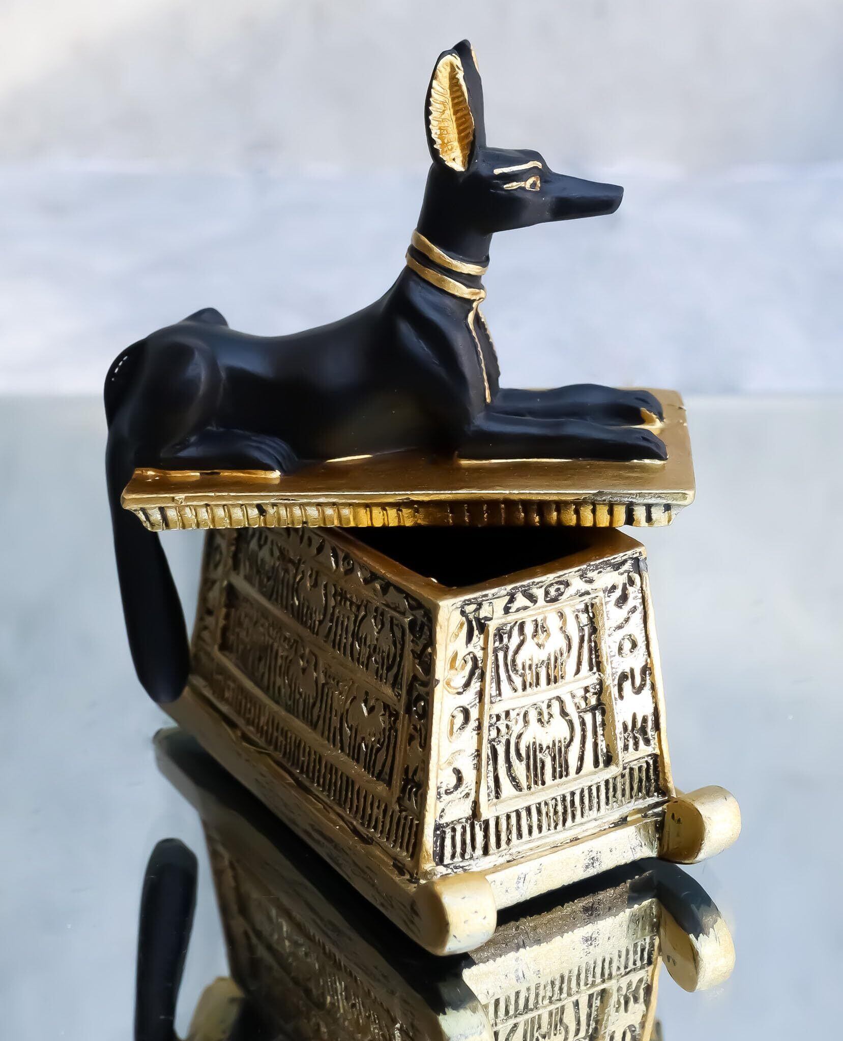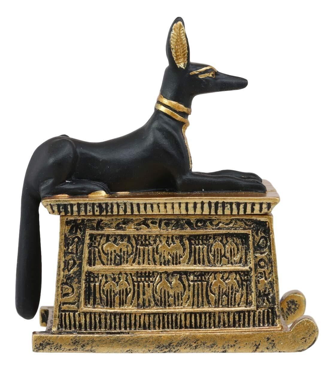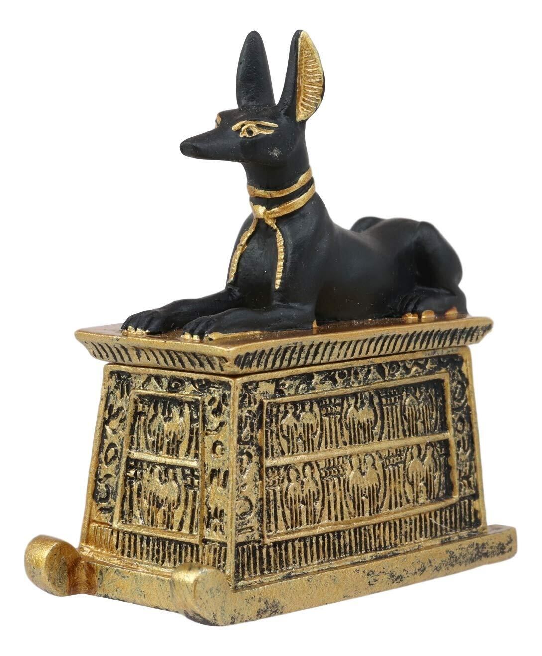 Ebros Gift エブロス エジプトの神 象形文字 アヌビス 犬 エジプトのミニチュア カルトゥーシュ ボックス ブラックとゴールド仕上げ 神と女神 古代伝説の神 マミュイフィション 死 後の像