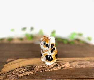 九谷焼の招き猫です。玄関や床の間に飾る縁起物です。両手で招く三毛猫です。