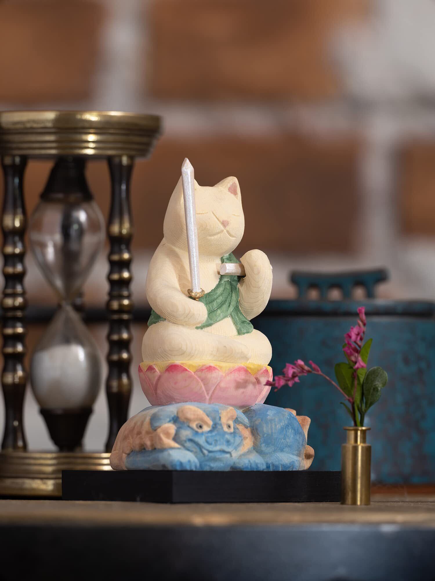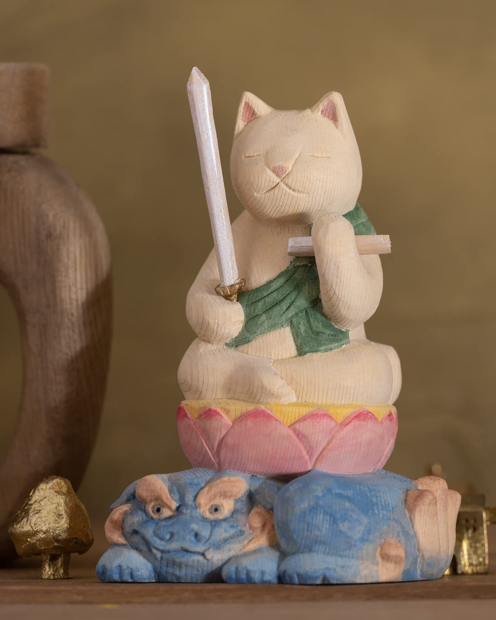 猫buddha 文殊菩薩 (卯年の守護本尊) 仏屋さかい原型監修_十二支守り本尊 仏像 招き猫 まねき猫 置物(NB8もんじゅ