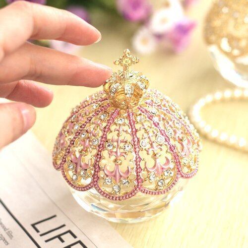 【新春セール】<ブリリアントクラウン> ピィアース トゥインクルボックス キラキラガラスの小物入れ 置物 宝石箱 女性が喜ぶ可愛いプレゼント 誕生日プレゼント 自分へのご褒美 X'mas【ピィアースより直接仕入れショップ】 (ワインレッド・ピンク) | paghag
