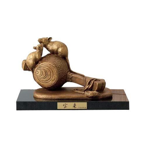 【2022最新】高岡銅器 銅製置物 川崎普照作 御影石付 茶金漆仕上 宝来 30-02