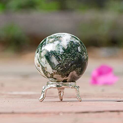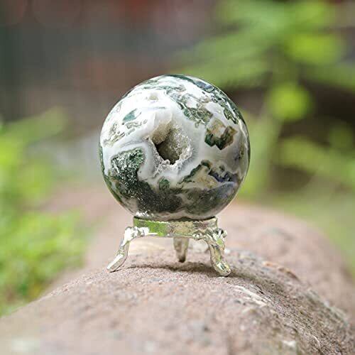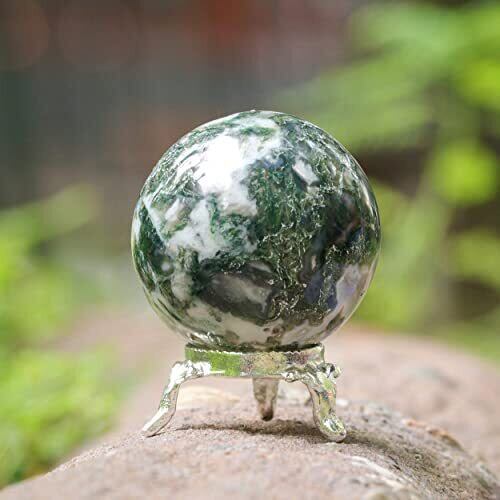 ✨ジェムストーンスフィア:ナチュラルヒーリングツリー瑪瑙クリスタルジェムストーンスフィアディビネーションボール彫刻フィギュアメタルスタンド付き|サイズ:45-55mm |レイキ、瞑想球、風水クリスタル、チャクラオーラバランスを癒すクリスタル用の刻まれたストーンボール。パッケージには、カタログを説明する宝石1つとポーチが含まれています。