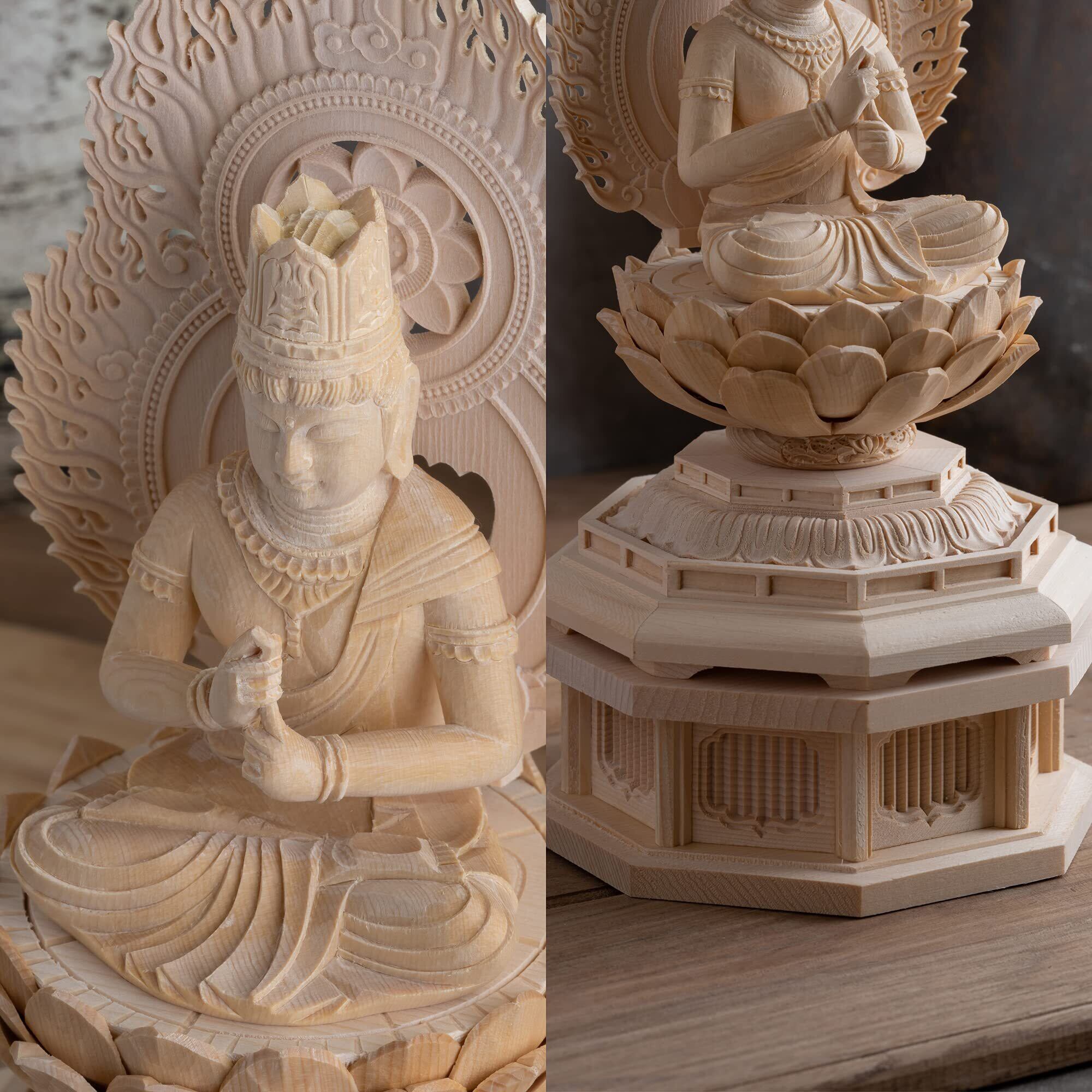 木彫仏像 大日如来 座像22.5cm(木製:桧木)_未・申年生まれ 十二支守護本尊 干支 (だいにちにょらいWhi)