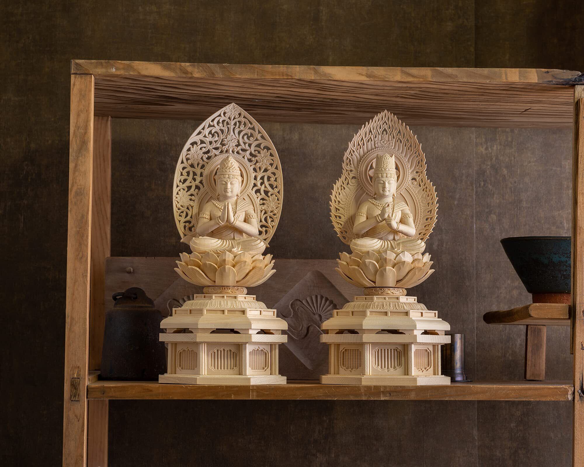 備考:商品は職人・仏師が一体一体手作業で製作を行い、高レベルな均一化を図りながら仕上げを施した製品です。天然木を使用した製品の為、一体ごとに木目や色味が若干異なる場合がございます。