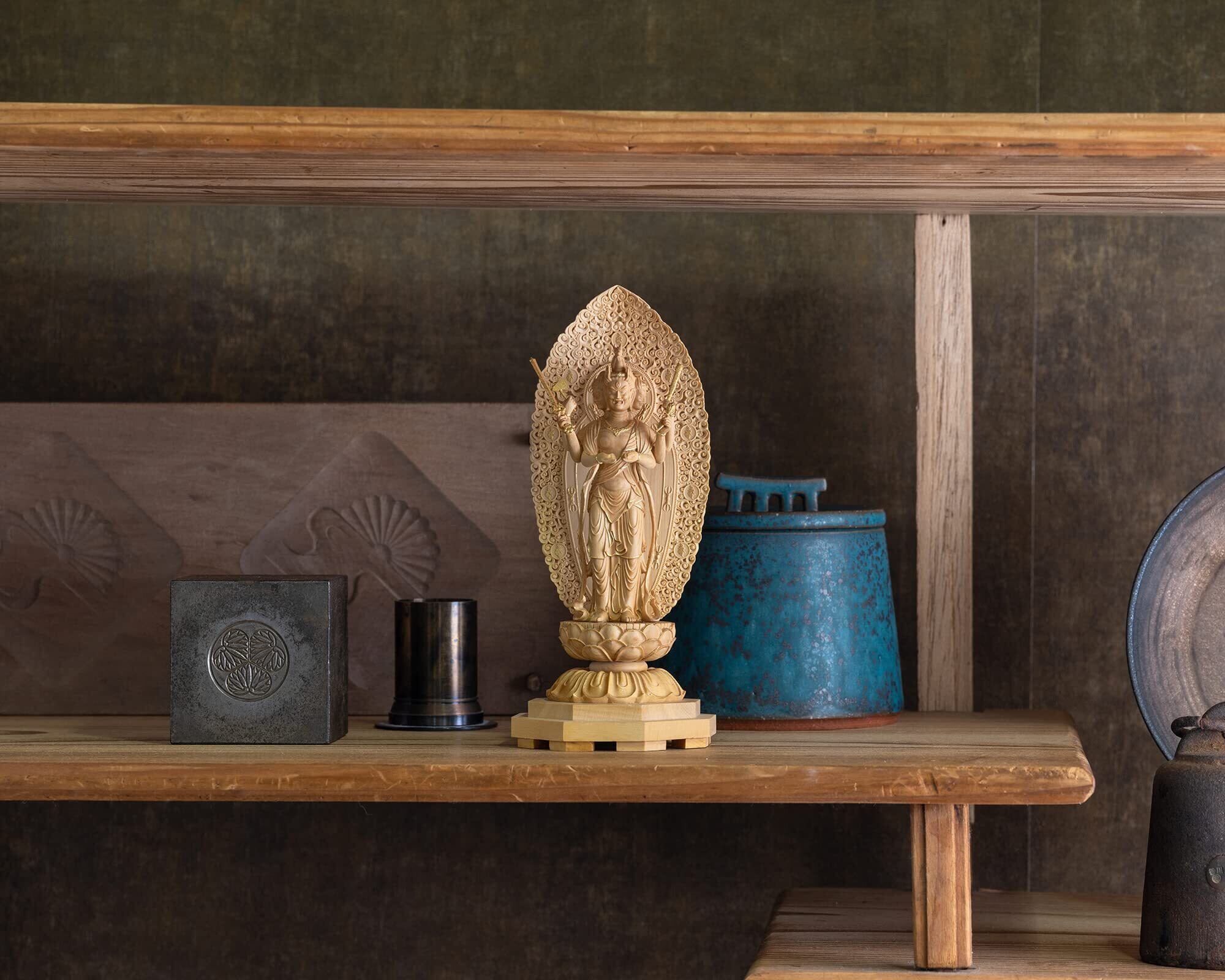 素 材:天然木(ツゲ)◆製品内容:本体(台座一体)、光背 桐箱入◇生産国:中国