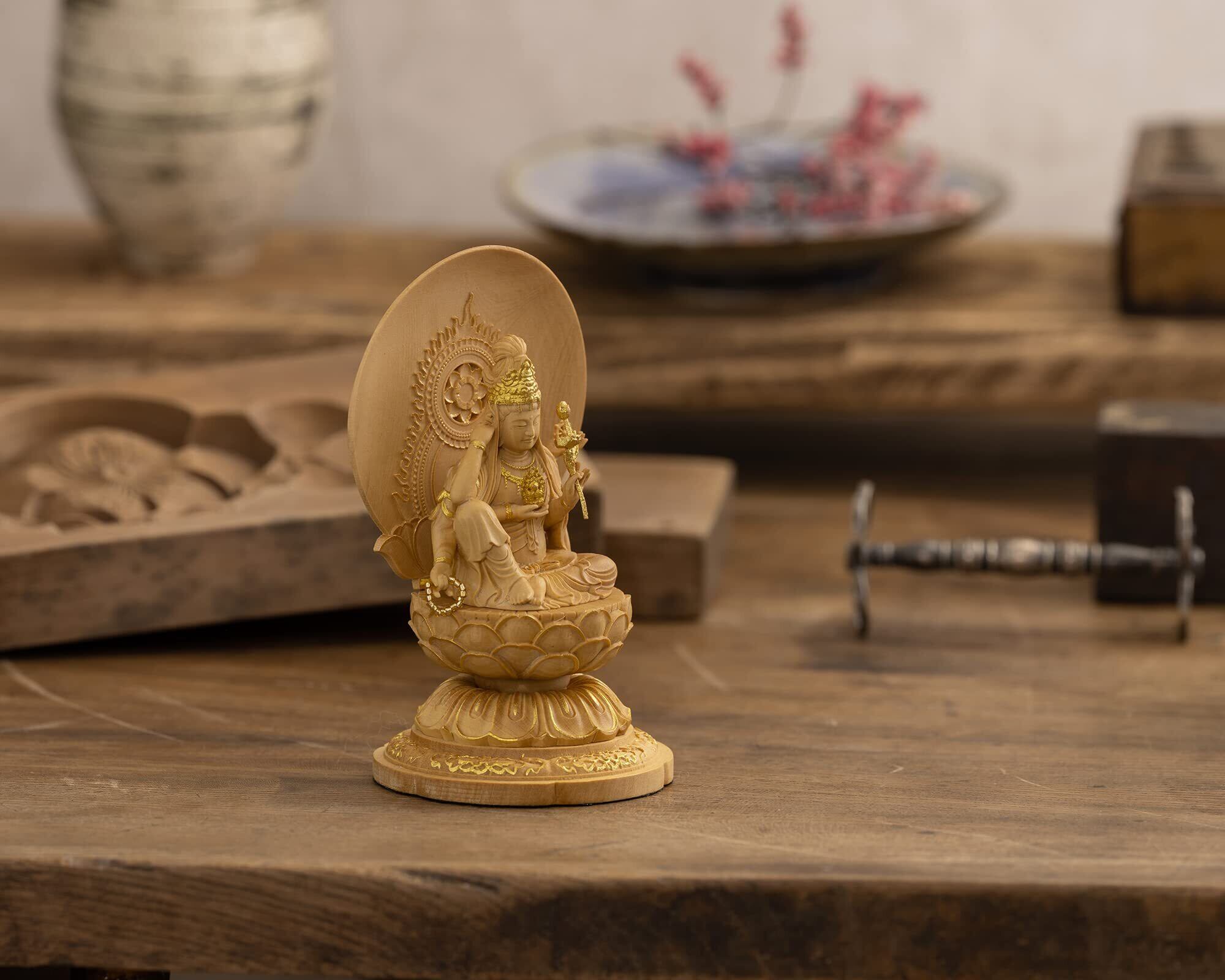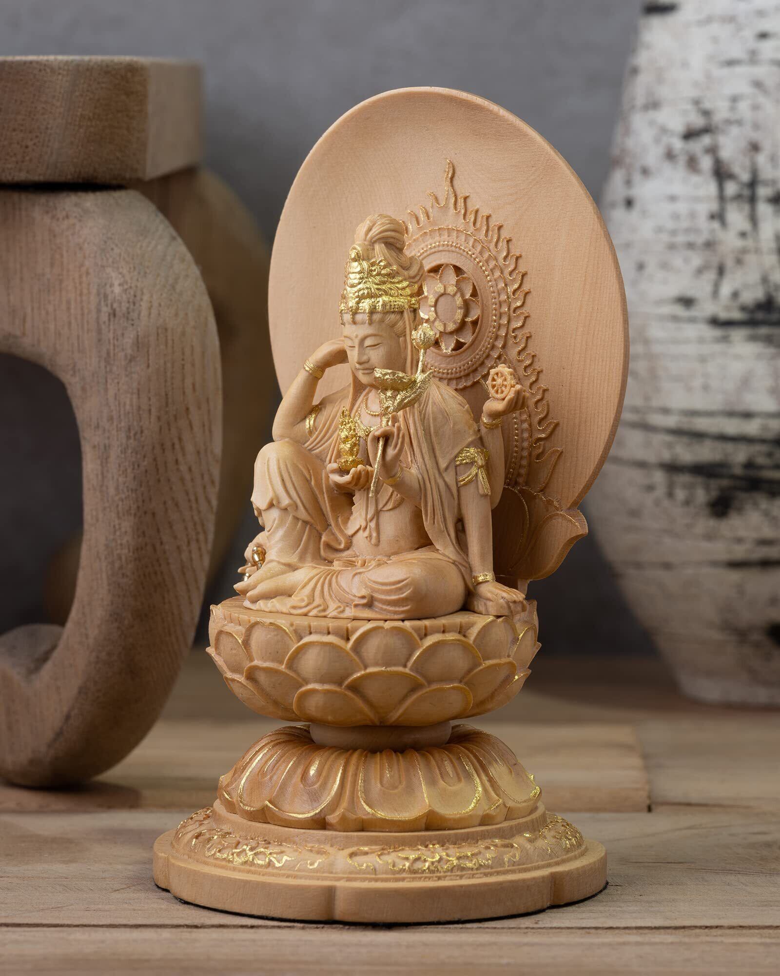 【新春セール】極小仏 如意輪観音 10.5cm(木製:ツゲ 金泥仕上)_観世音菩薩 仏像 フィギュア 木彫り 置物(GSBにょいりんかんのん
