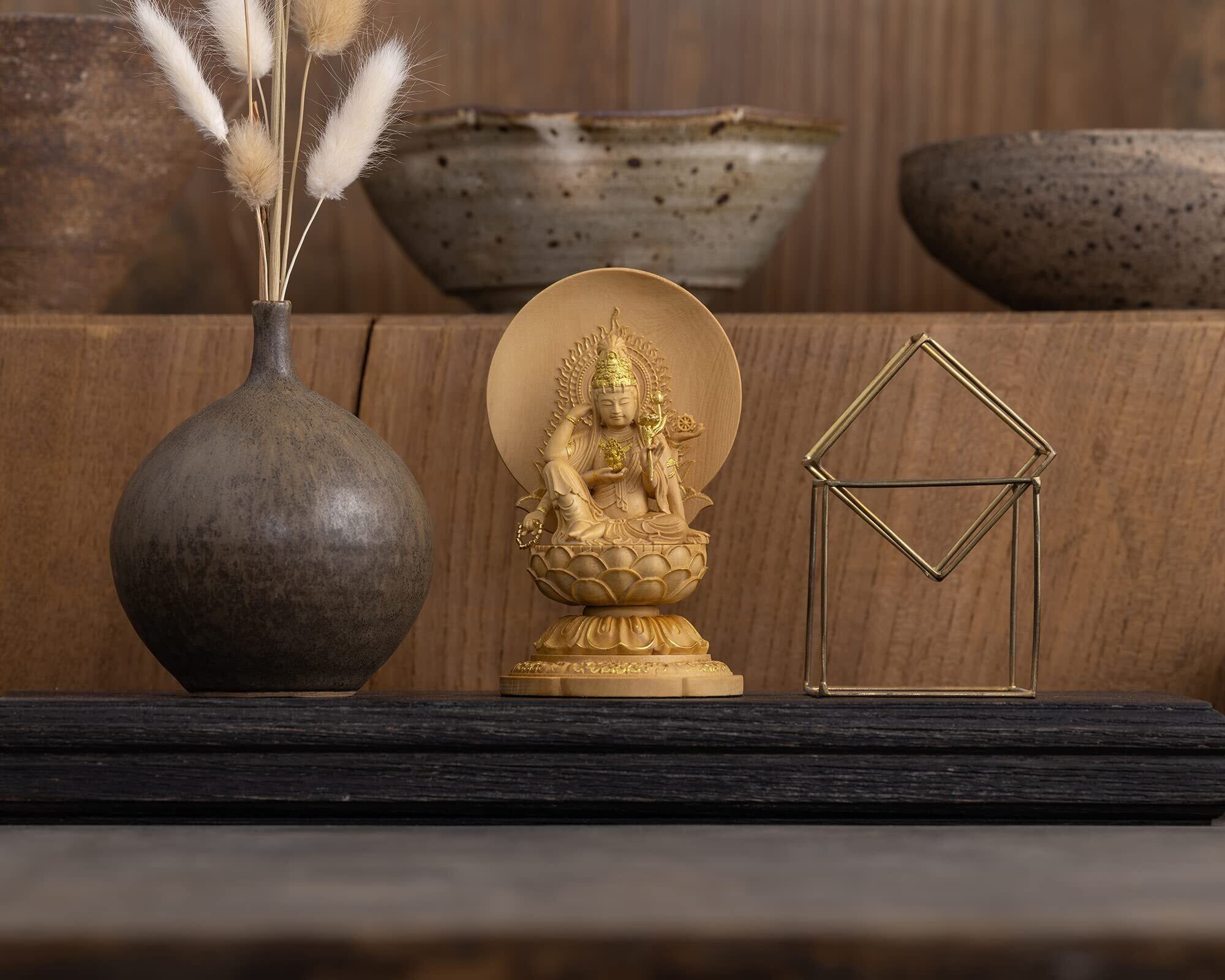 極小仏 如意輪観音 10.5cm(木製:ツゲ 金泥仕上)_観世音菩薩 仏像 フィギュア 木彫り 置物(GSBにょいりんかんのん