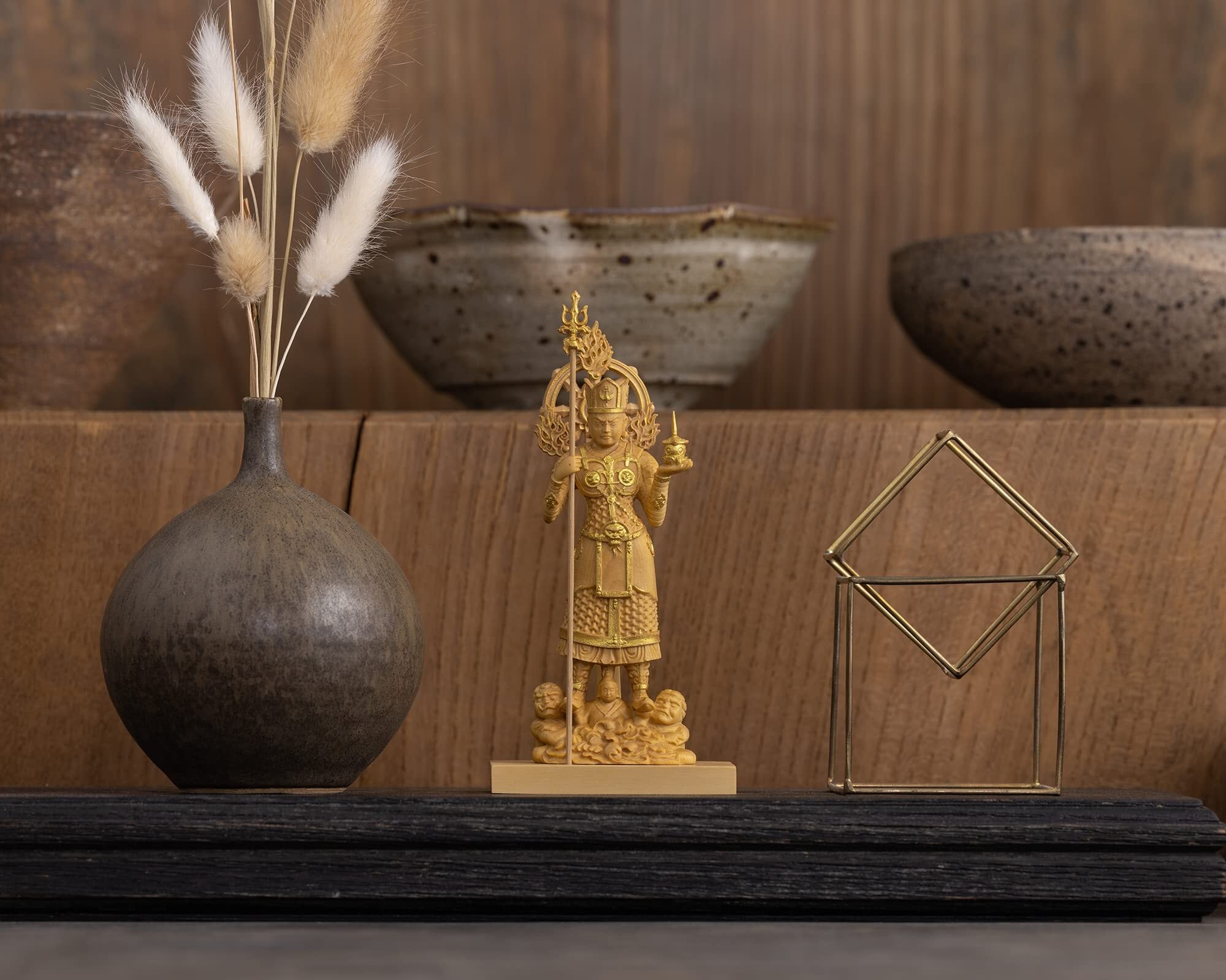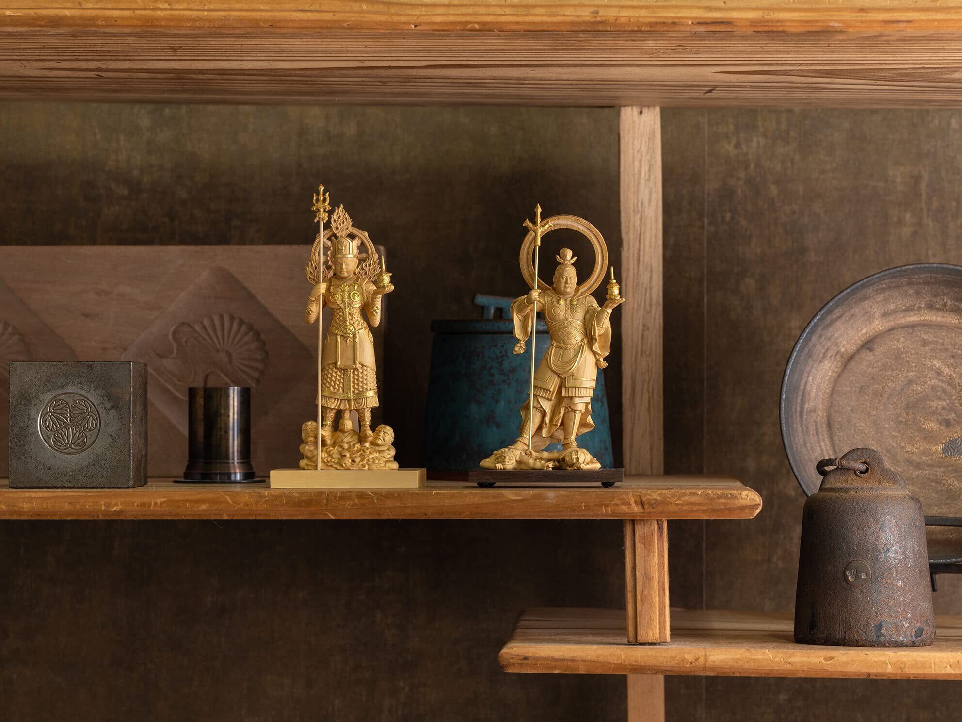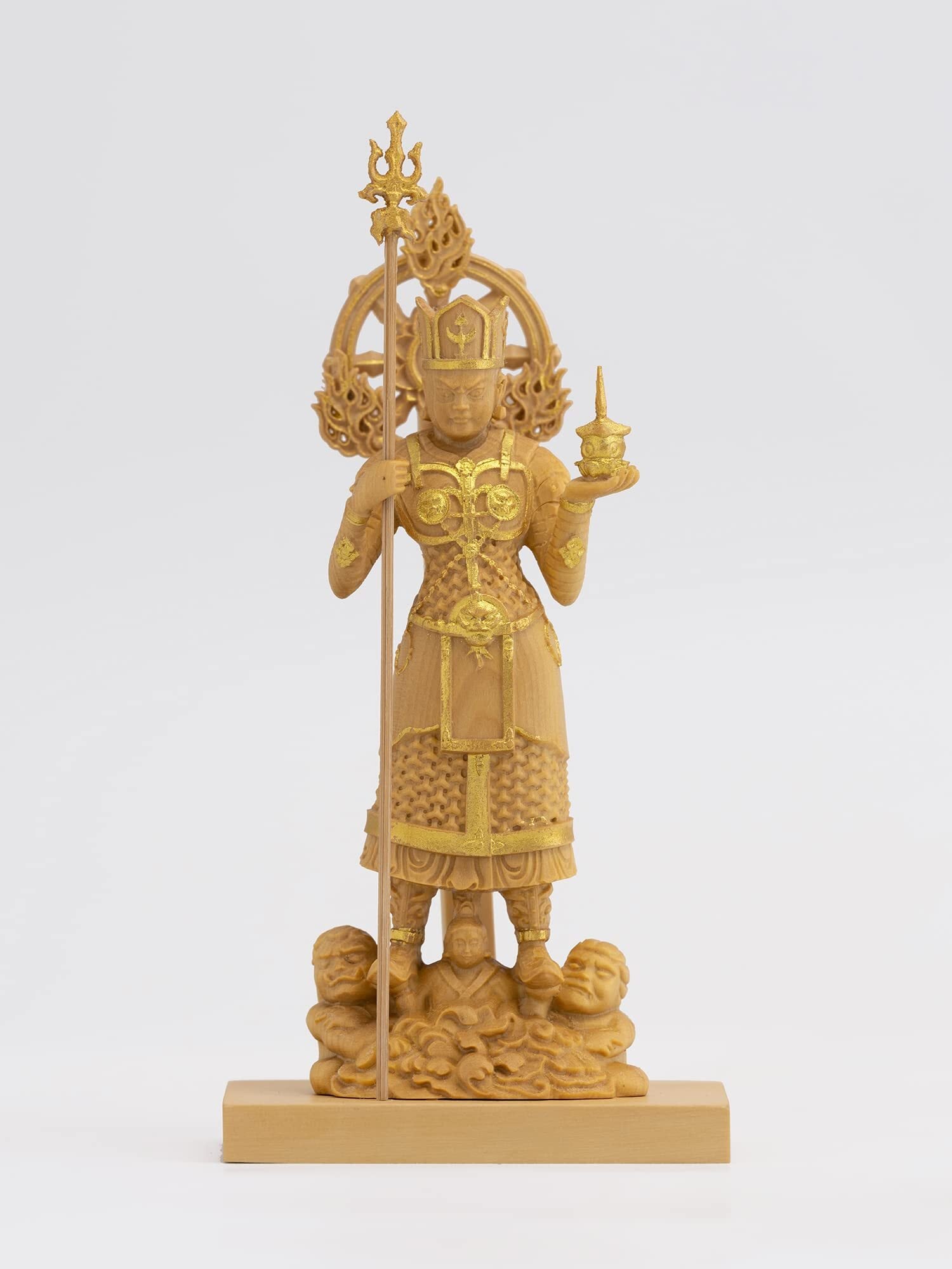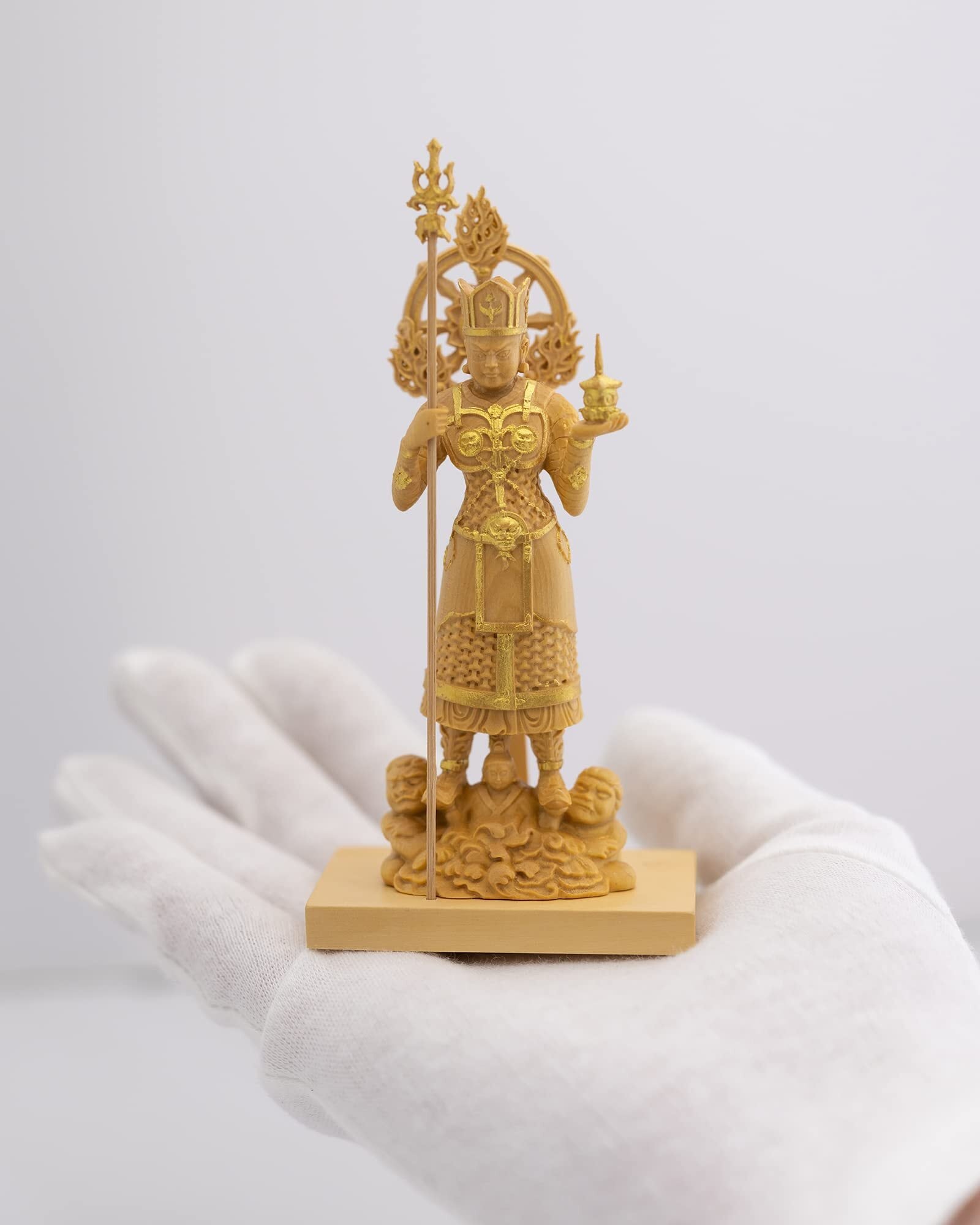 素 材:天然木(ツゲ)◆製品内容:本体(台座一体)、戟、光背 桐箱入◇生産国:中国