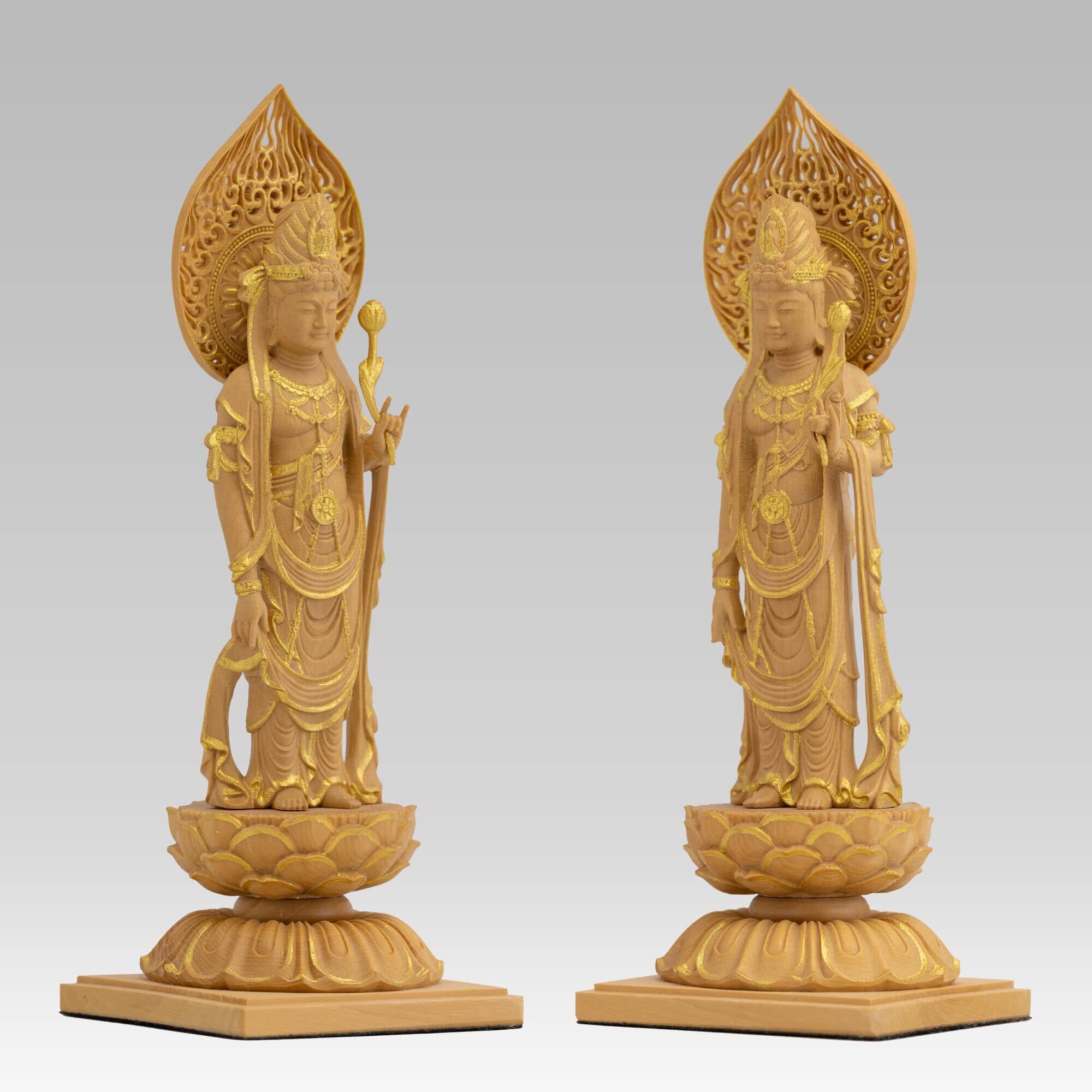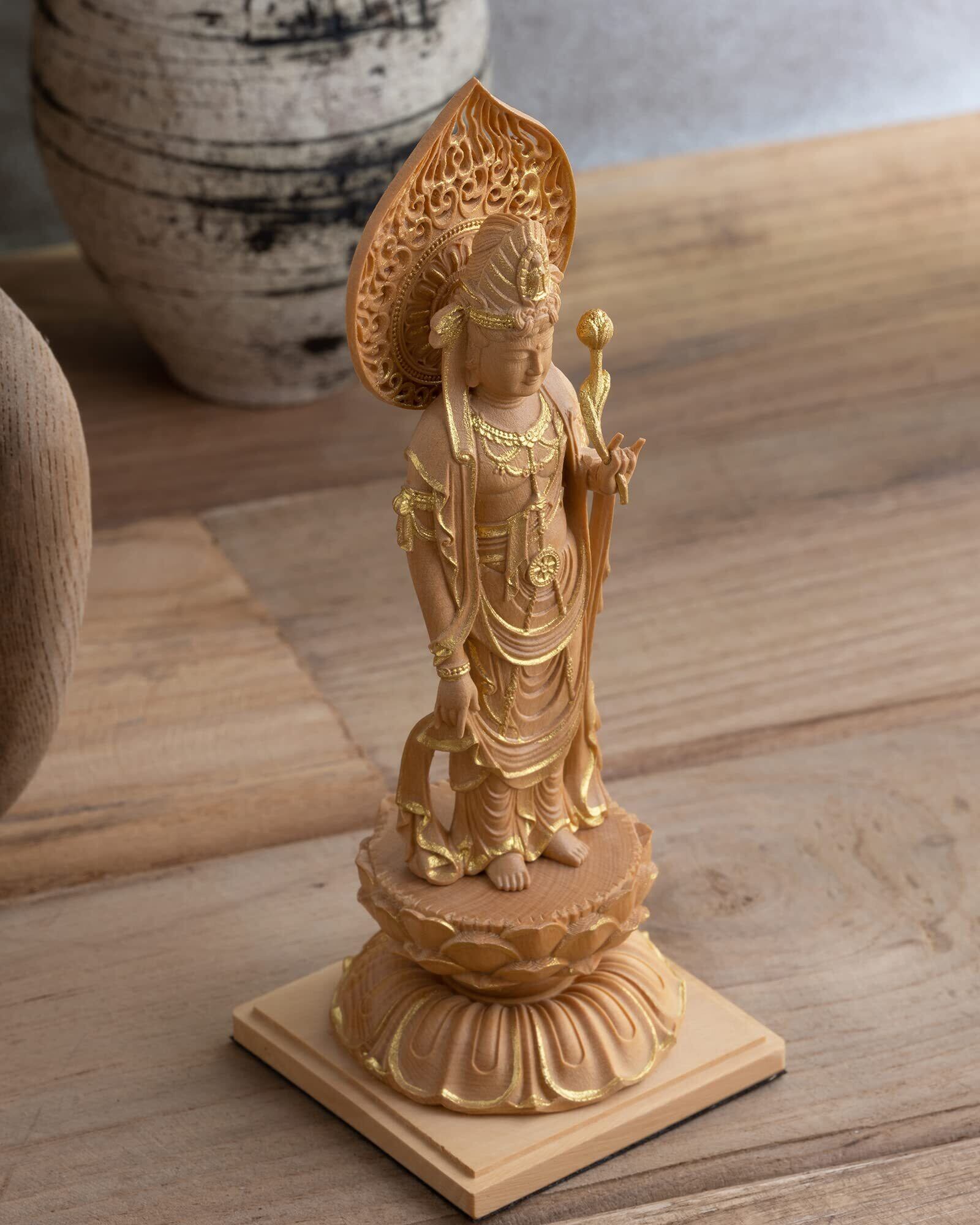 極小仏 聖観音菩薩 13cm(木製:ツゲ 金泥仕上)_聖観世音菩薩 仏像 フィギュア 木彫り 置物(GSBしょうかんのんぼさつ
