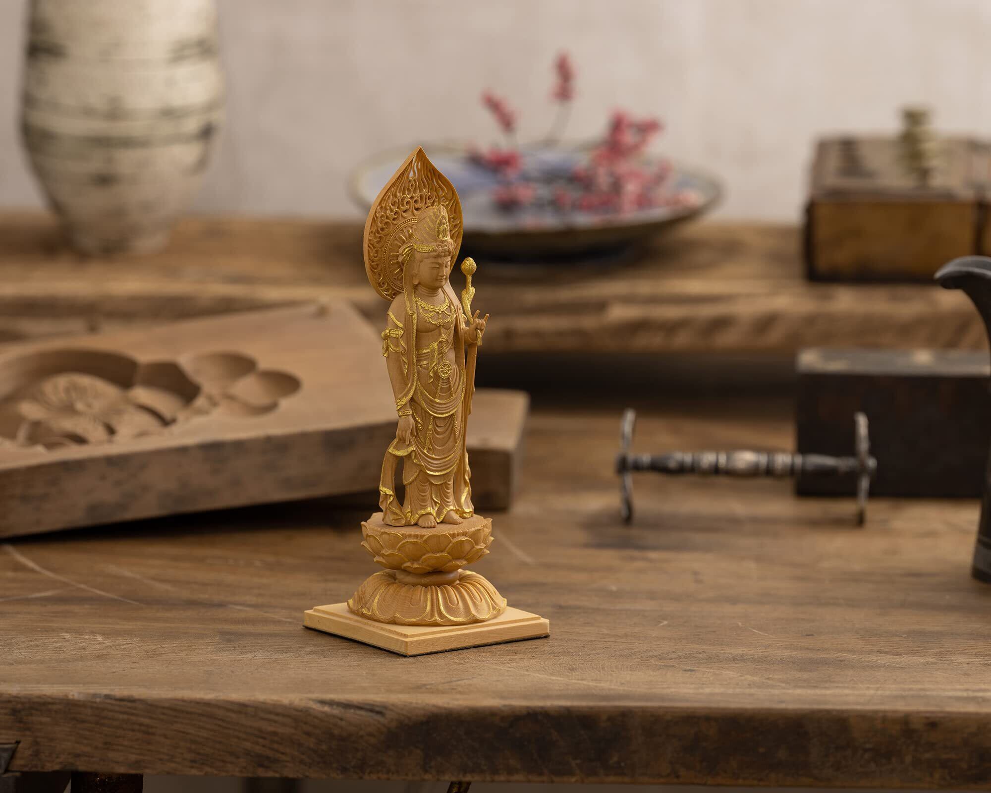 【在庫処分】極小仏 聖観音菩薩 13cm(木製:ツゲ 金泥仕上)_聖観世音菩薩 仏像 フィギュア 木彫り 置物(GSBしょうかんのんぼさつ