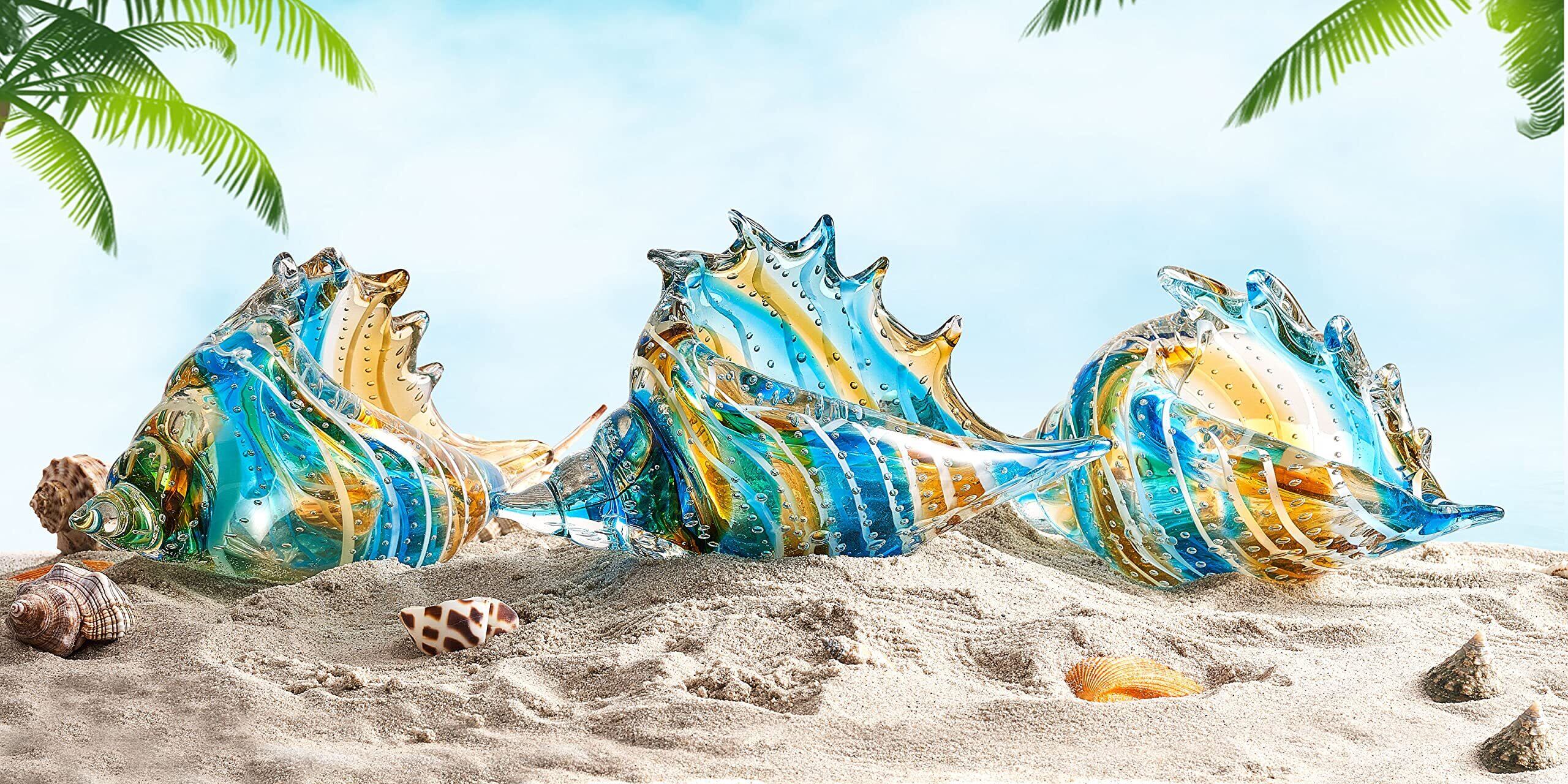 【2022最新】手吹きガラス貝殻アート彫刻オーシャンマルチカラーとホームオフィステーブルデコレーションギフト、海の動物の飾り、家の装飾、海の動物コレクション、ガラスの貝殻、置物ギフト室内装飾貝殻巻き貝彫刻… (巻貝)