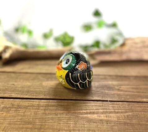 九谷 フクロウ ふくろう 幸運 置物 デコ盛 黒 2.2号