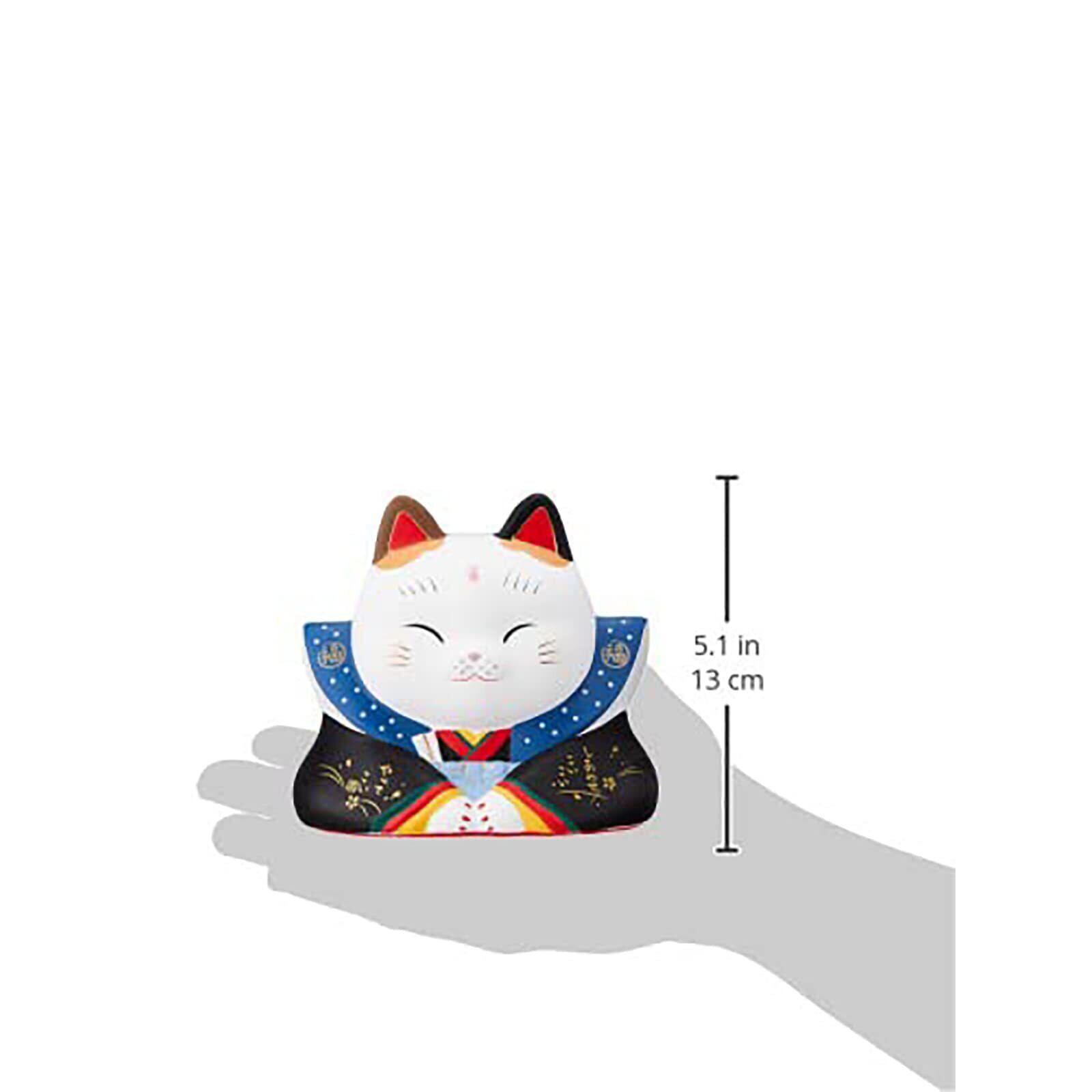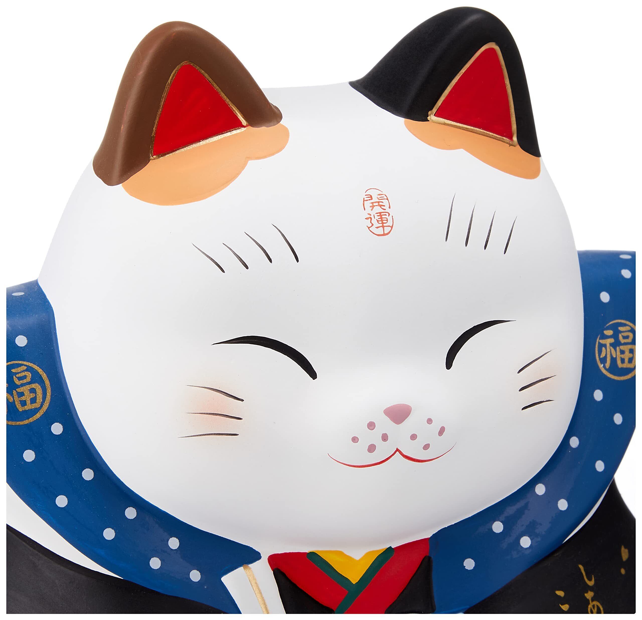 薬師窯 錦彩 福助 招き猫 4号 高さ12cm 7845