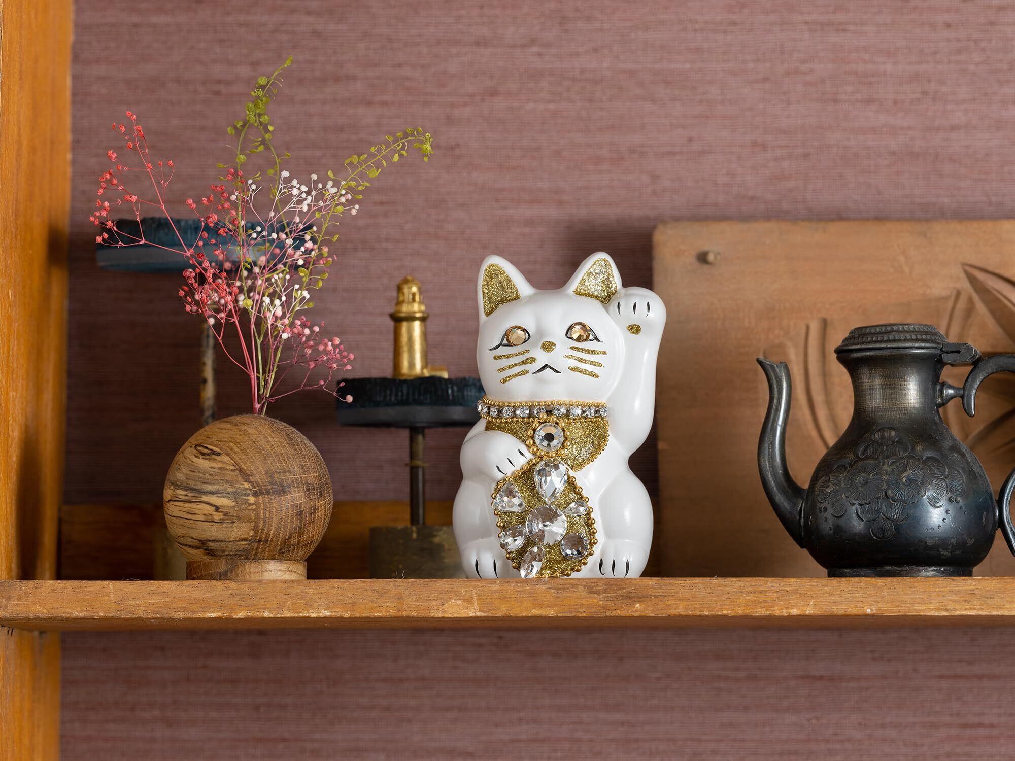 ご縁猫 ジュエリーキャット(S-SIZE 白 White)左手あげ/陶器_lucky cat 招き猫 まねき猫 縁起 風水 置物 賽銭箱(jw_S白