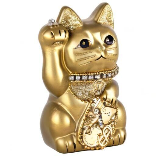 ご縁猫 ミリオネアキャット(S-SIZE 金 Gold)右手あげ/陶器_lucky cat 招き猫 まねき猫 縁起 風水 置物 賽銭箱(ml_S金