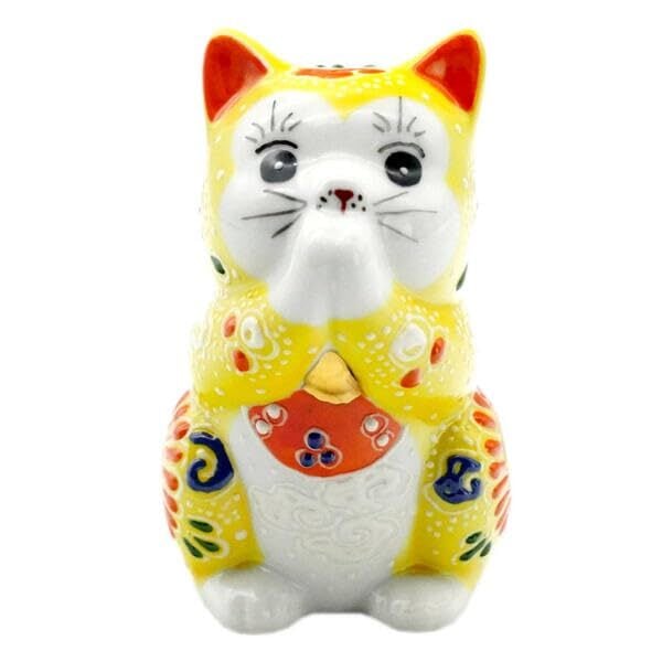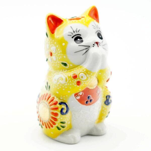 九谷焼 お祈り猫(招き猫)2.7号 黄盛C 磁器 日本製