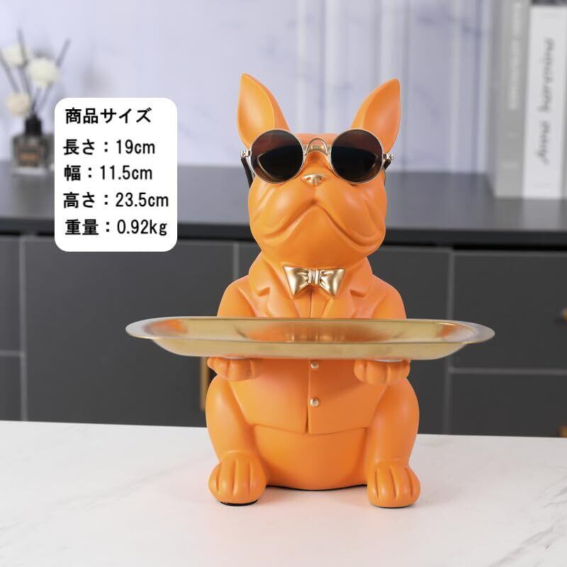 収納トレイ 犬 置物 インテリア 貯金箱 (pont du monde) (オレンジ色)