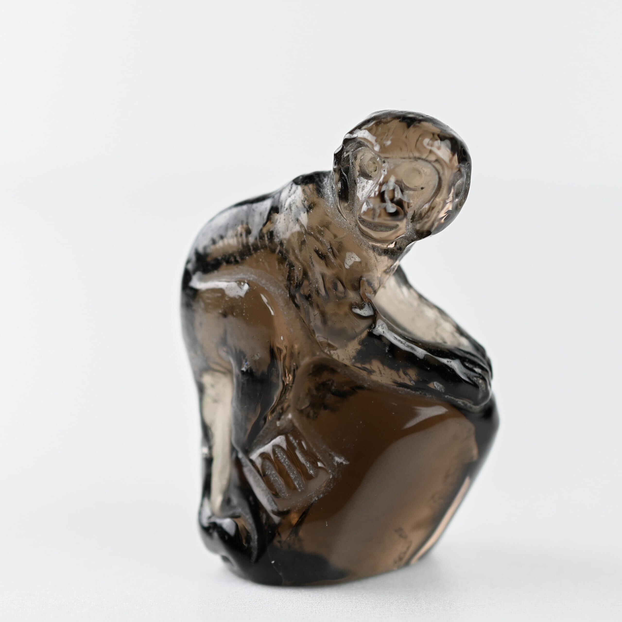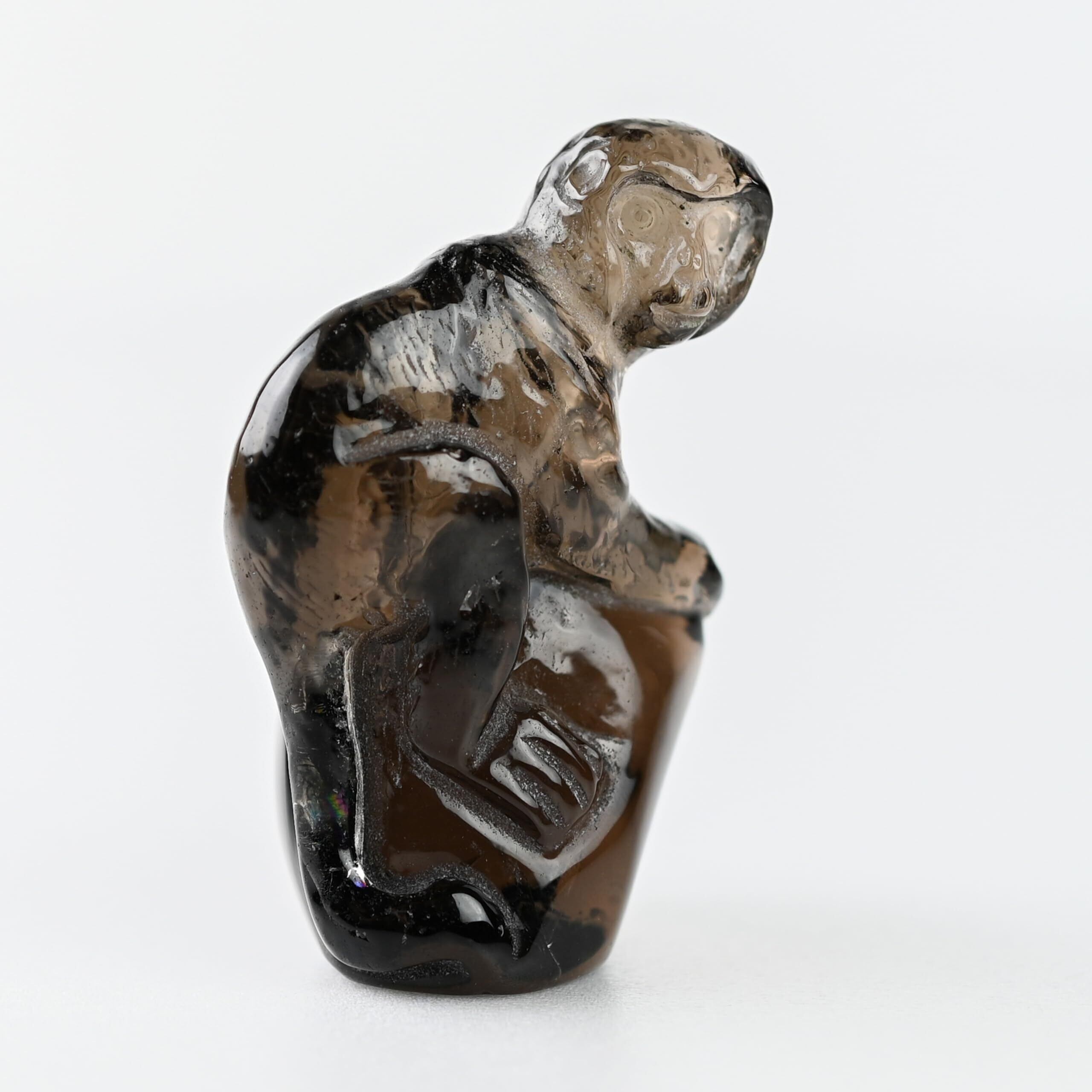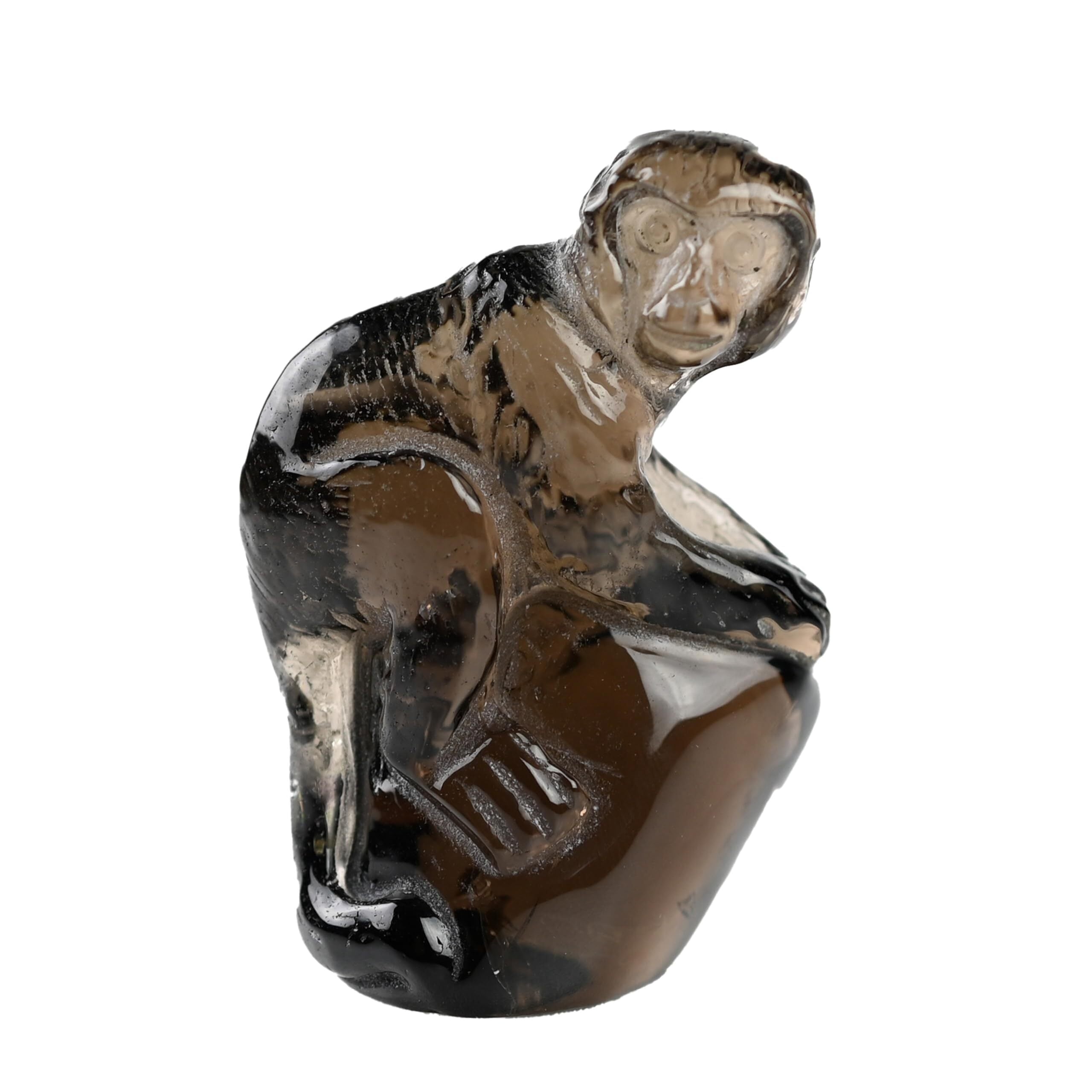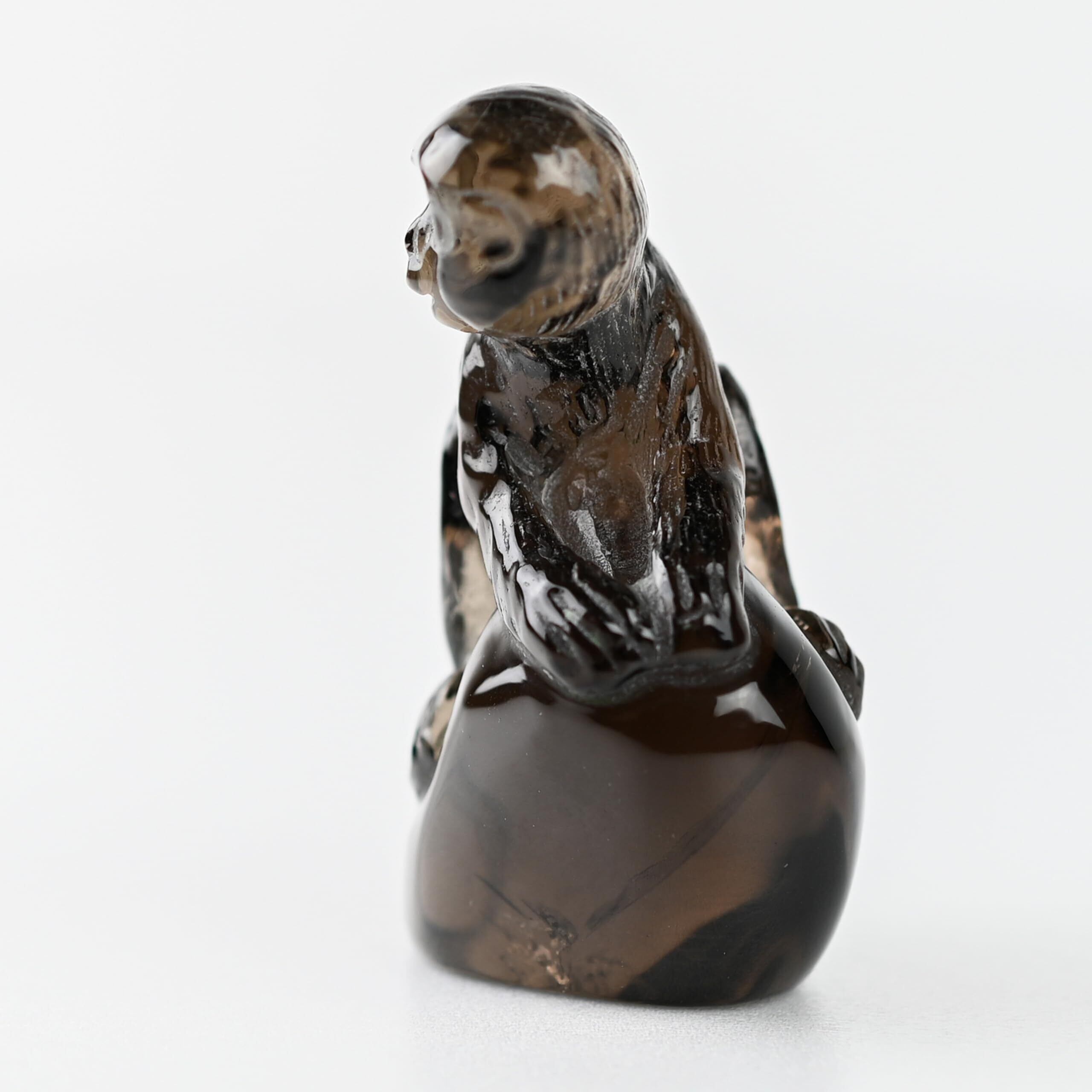 【英雅堂】スモーキークォーツ 茶水晶 サル 彫刻 サイズ:横5cm×奥行3.3cm×高さ7cm 重さ:121g 天然石 パワーストーン 置物 インテリア